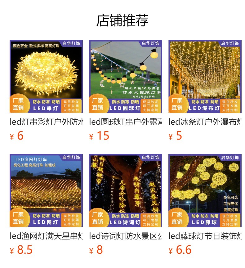 LED花火灯灯串掛木満天星灯串星灯串装飾防水工事亮化観光地区屋外