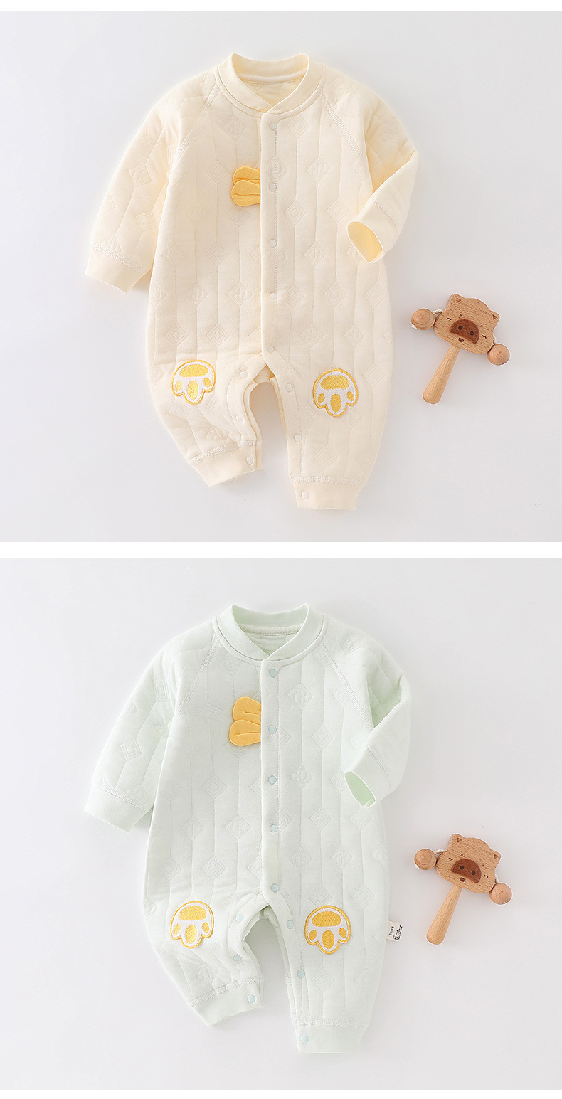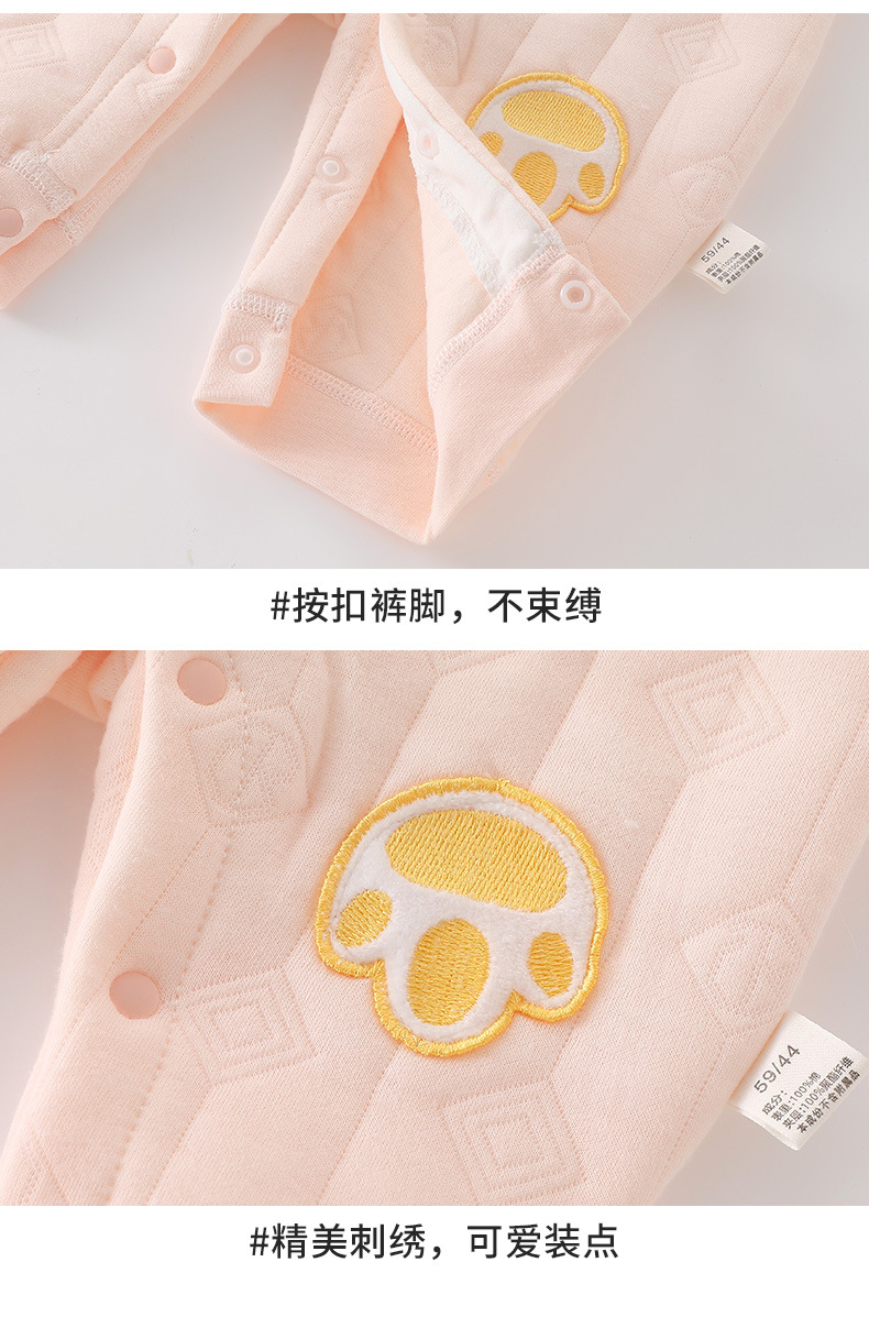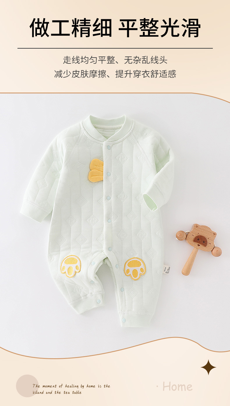 秋冬赤ちゃん保温純綿連体服三層綿男女赤ちゃん服新生児ロンパース長袖厚手