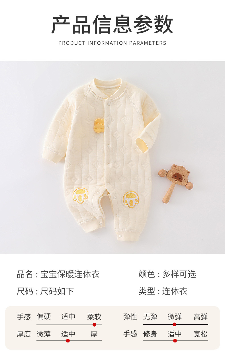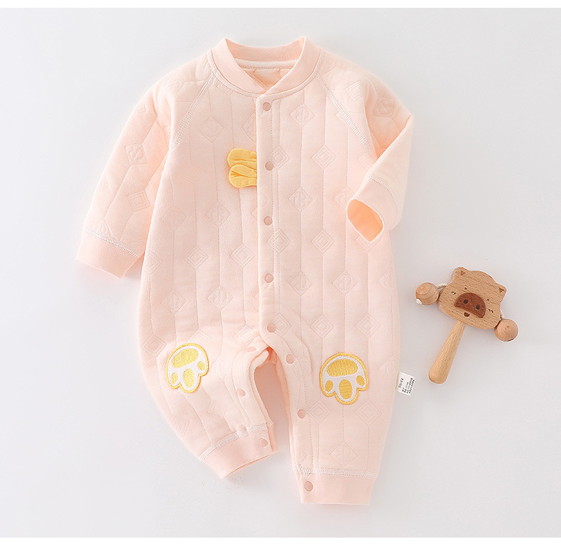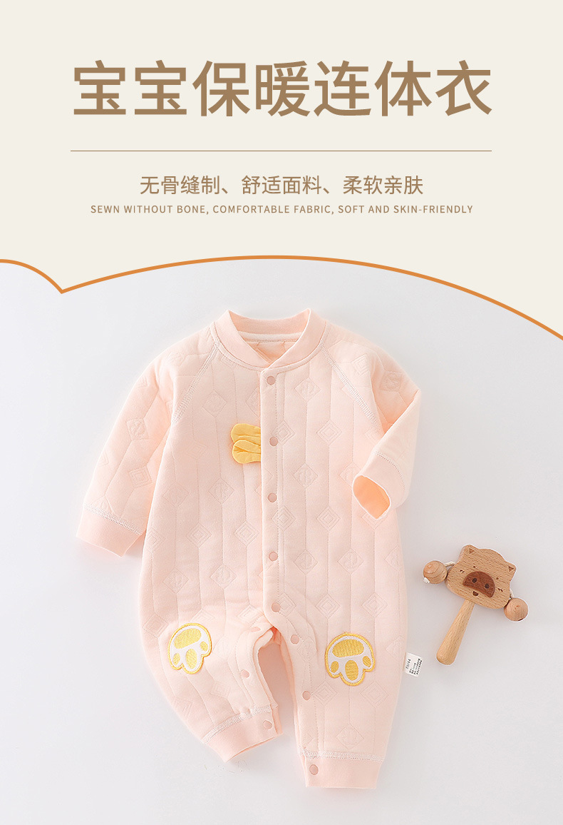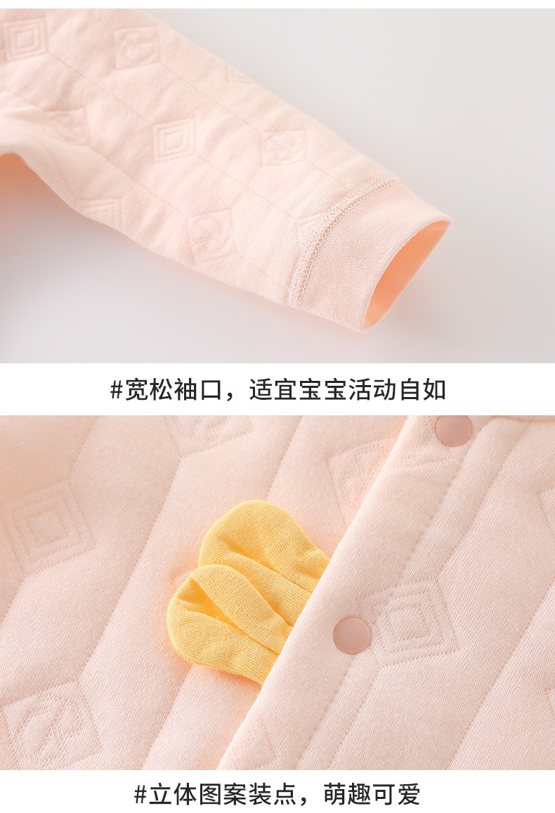 婴儿夹棉连体衣春秋薄棉宝宝长袖秋季哈衣新生儿衣服三层保暖批发