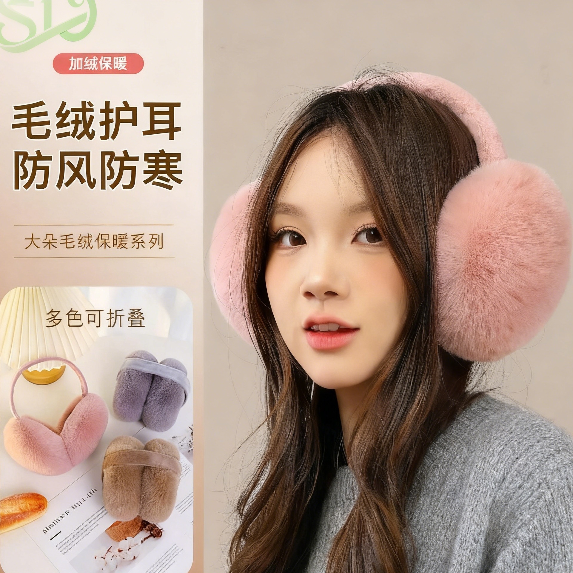 可爱麂皮绒耳罩冬季毛绒耳罩女韩版加绒保暖耳套骑行防寒防冻耳暖