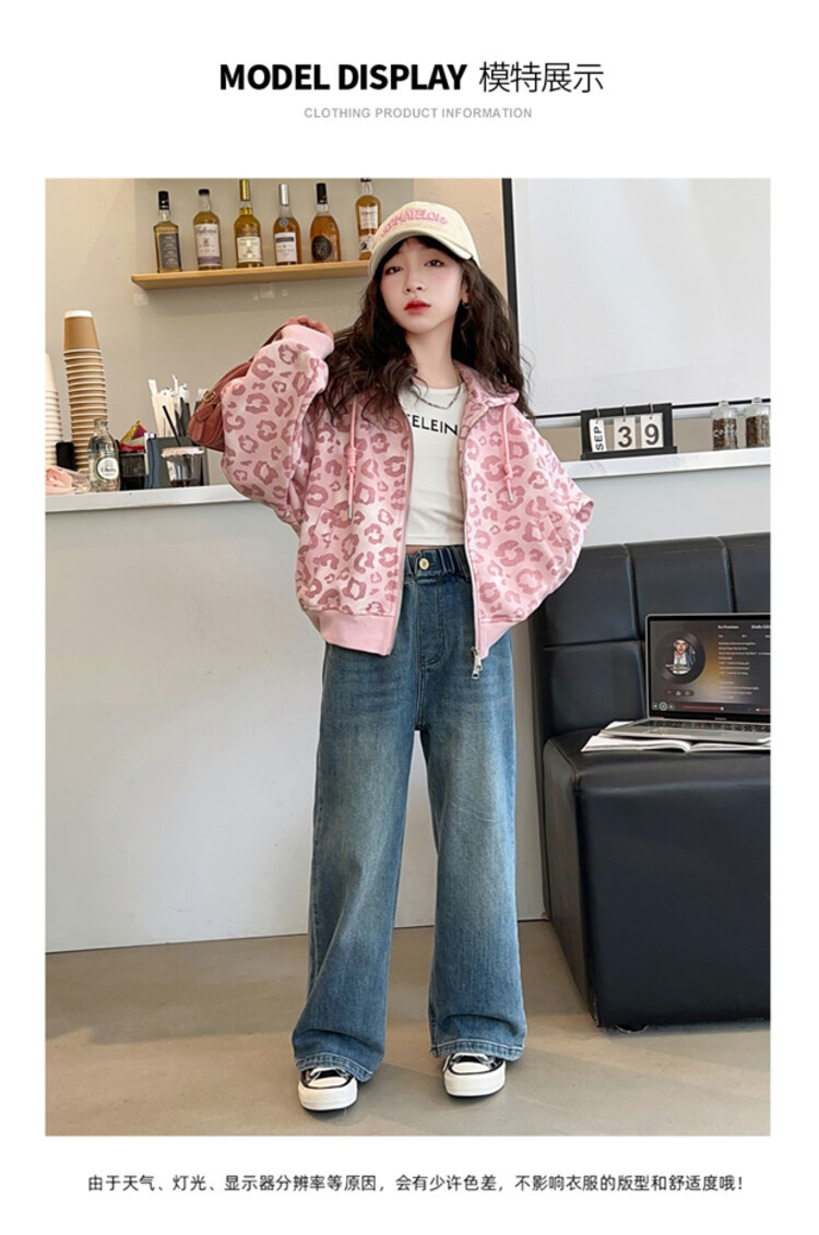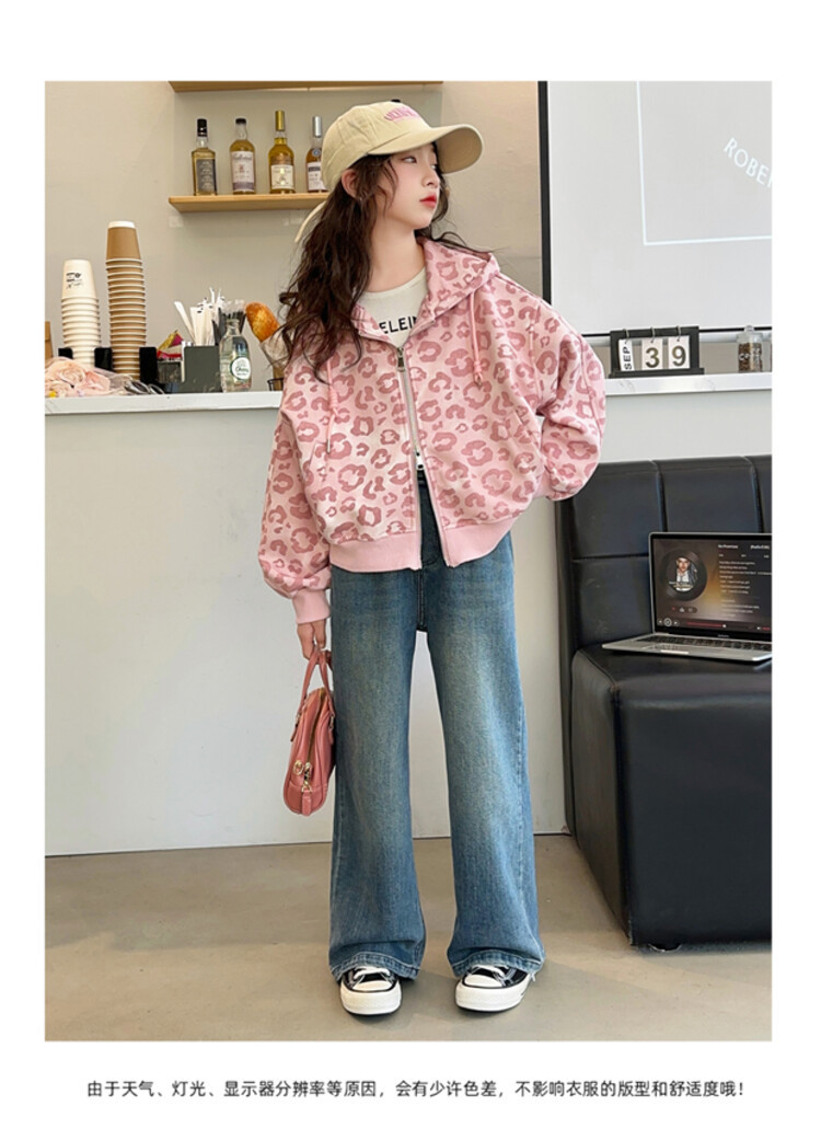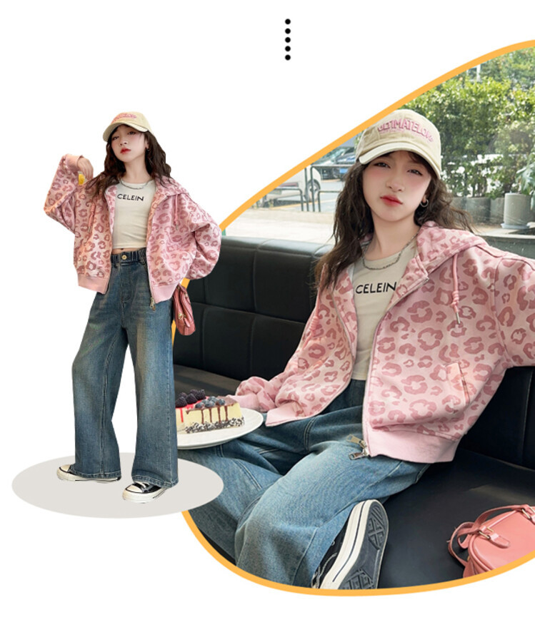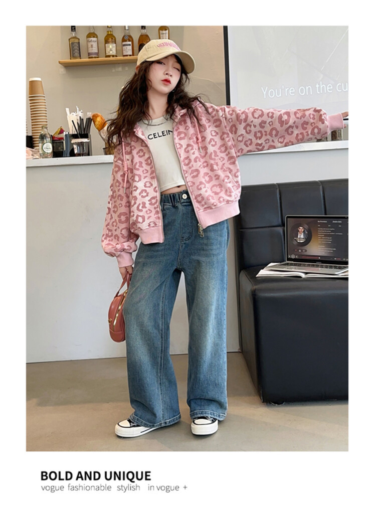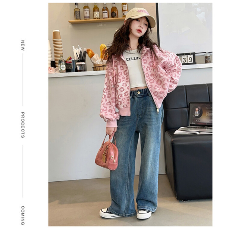シングルヒョウ柄ジャケット,ライトブルーのシングルジーンズ