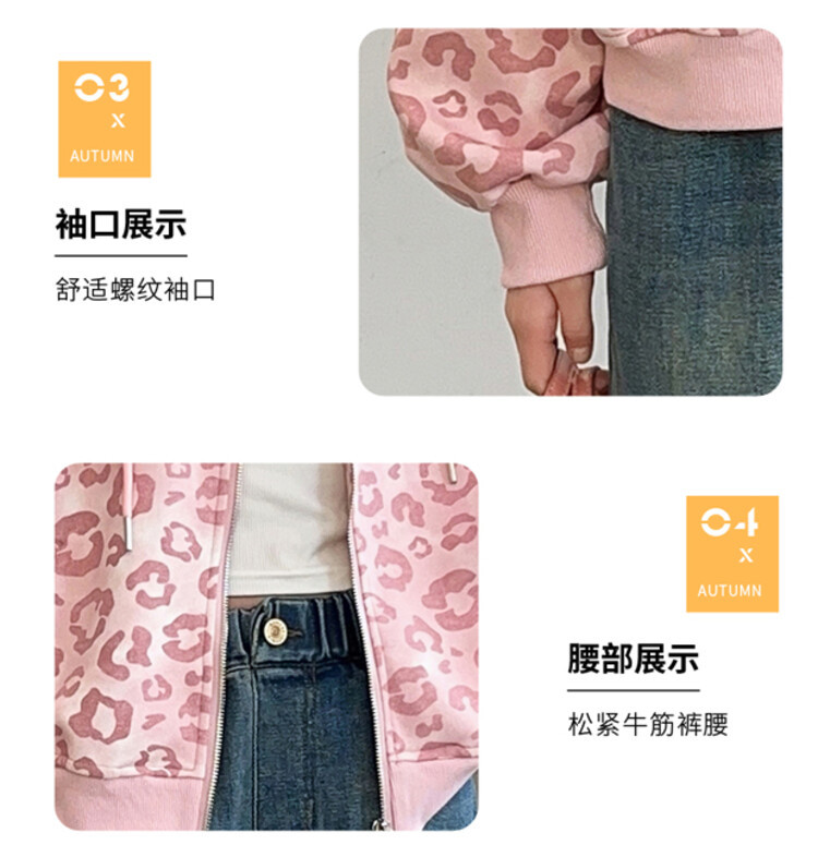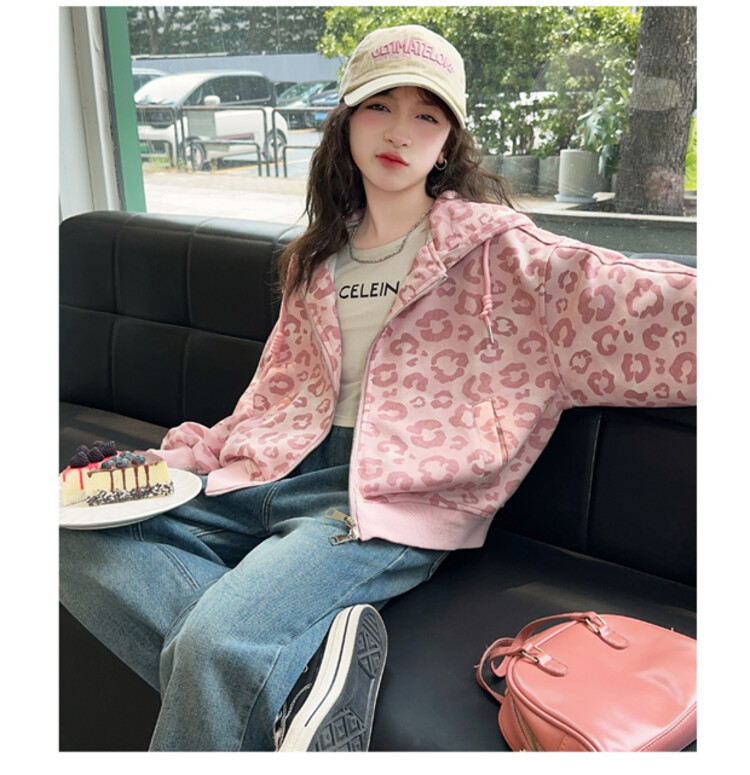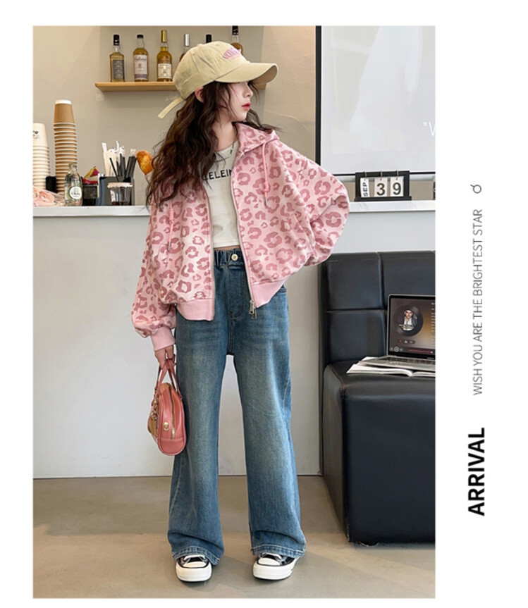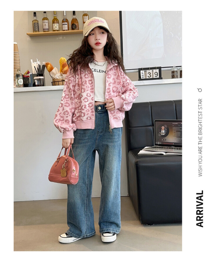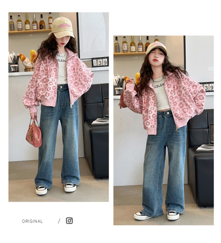 シングルヒョウ柄ジャケット,ライトブルーのシングルジーンズ