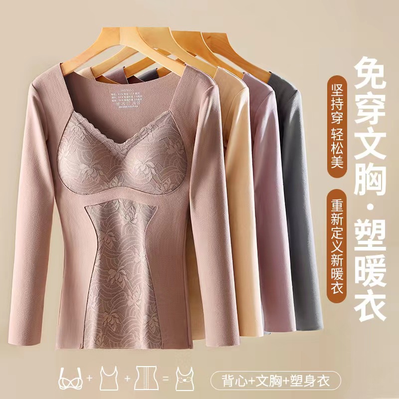 冬季新款石墨烯发热保暖内衣女加厚免穿文胸长袖秋衣塑形打底衫女