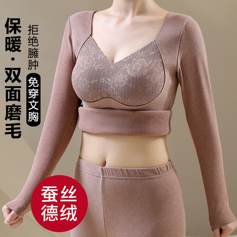 徳絨発熱保温下着女性セットにベルベットをつけて胸パッド付きの秋衣秋ズボンを作って冬にシャツを着ます