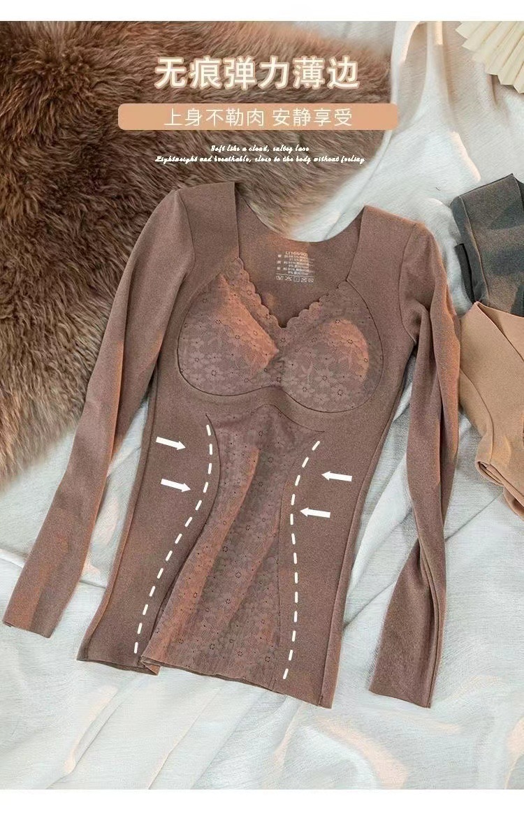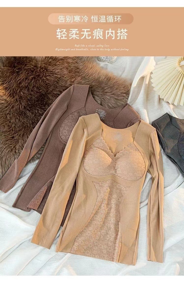 石墨烯发热秋冬保暖内衣女加厚带胸垫一体塑形内搭打底衫长袖秋衣