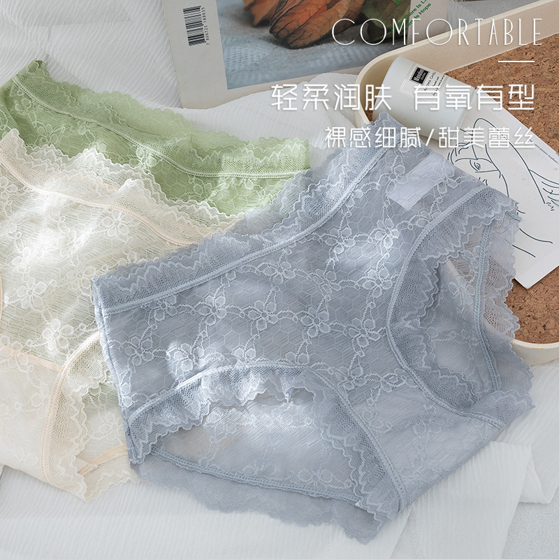 フレンチレースの女の子の下着夏薄いセクシーな半透明メッシュ通気性と快適な女の子のミッドウエストブリーフ