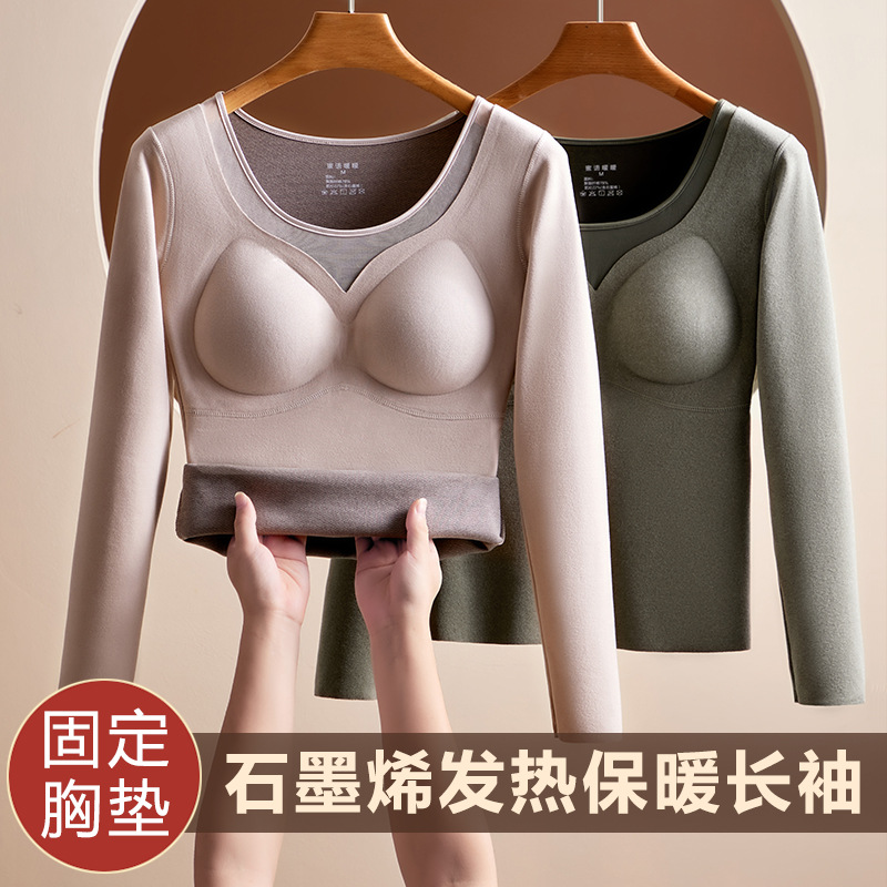石墨烯保暖内衣女加厚带胸垫一体塑形发热打底衫内搭长袖秋衣新款