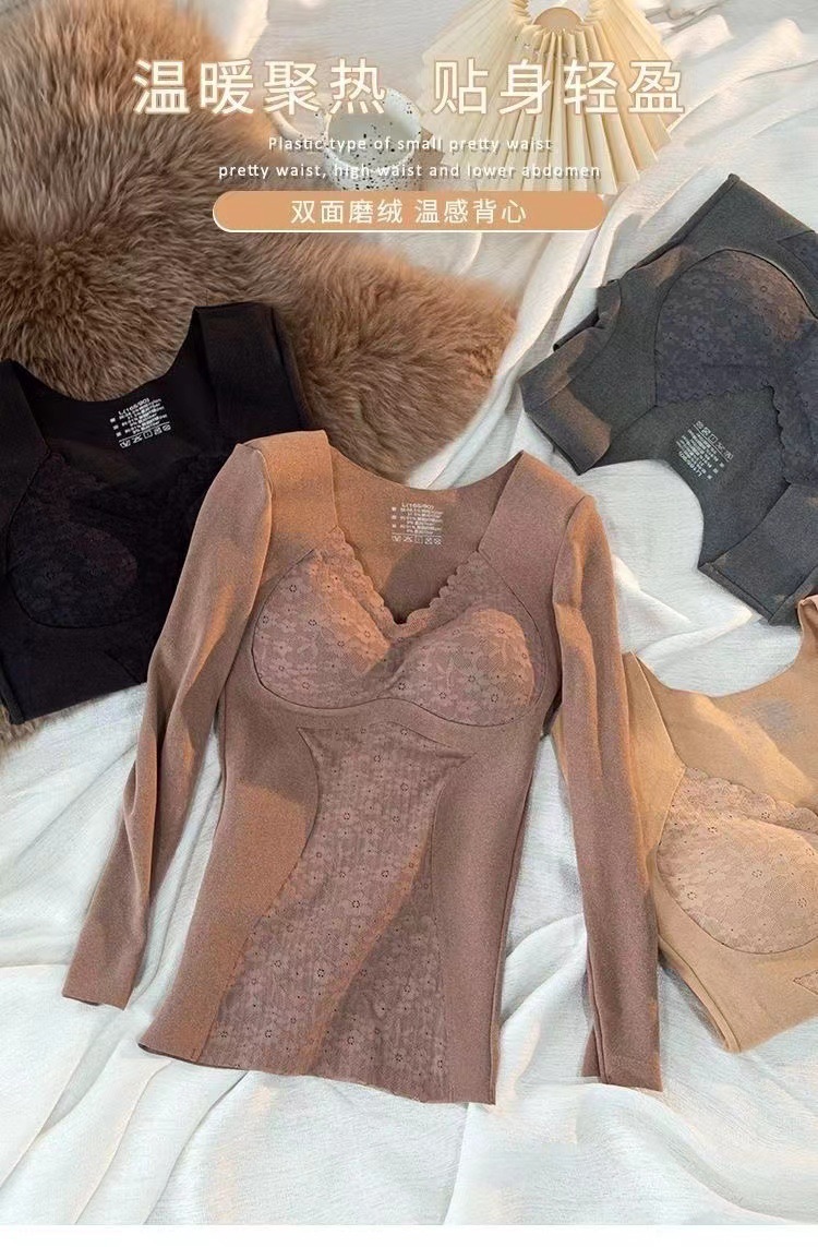カシミヤ絹糸発熱保温下着女性とベルベットの厚いシャツの秋の服は、胸の冬の上着の女性を着ないでください
