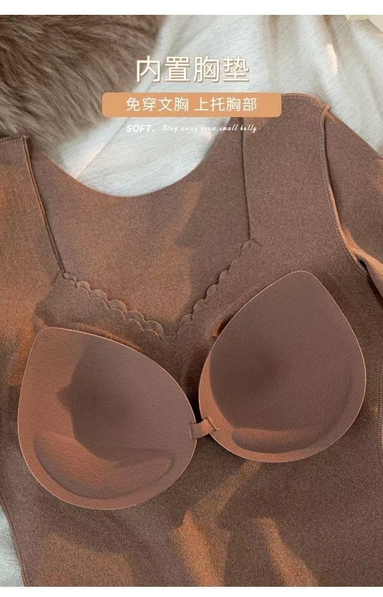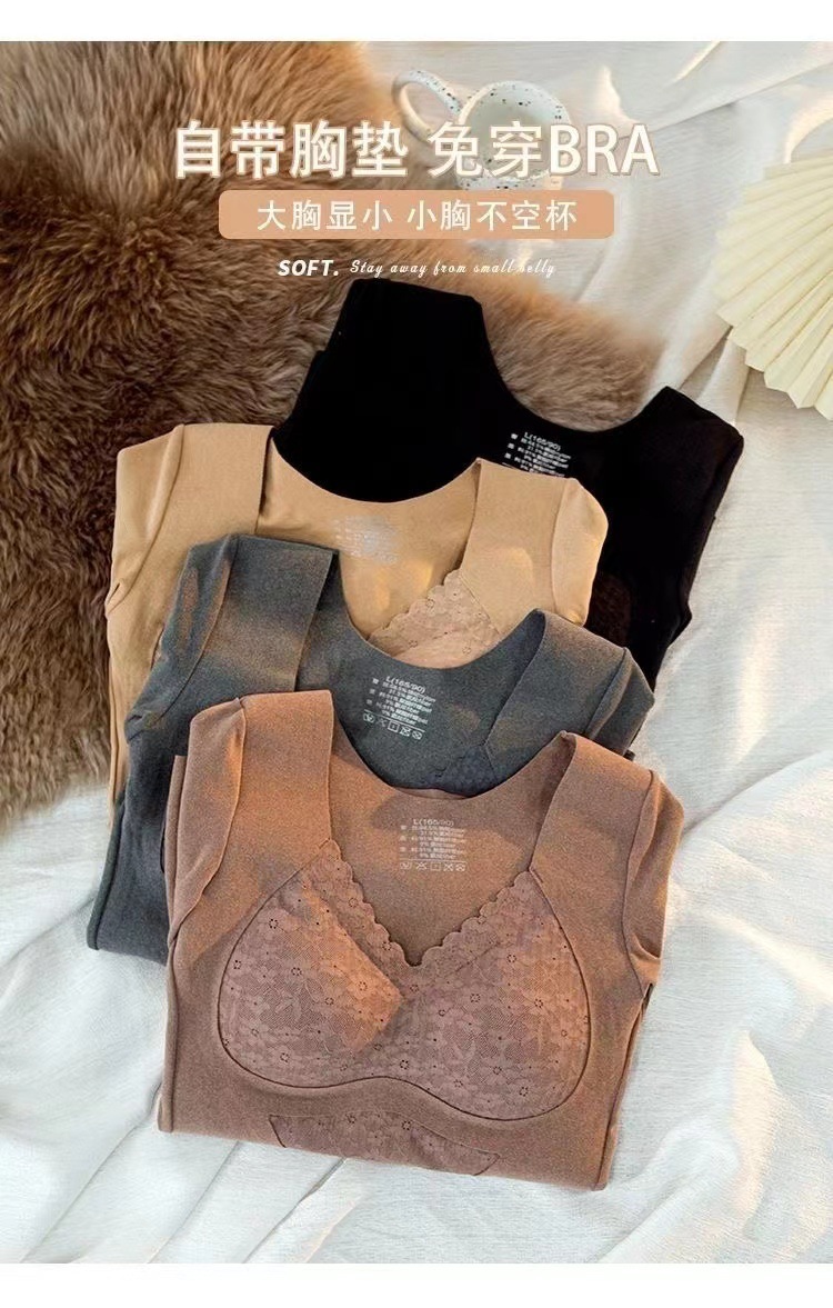 冬のベルベットは秋の服の女性を厚くして、ブラジャー一体の発熱シャツの上着グラフェン保温下着の女性を着ないでください