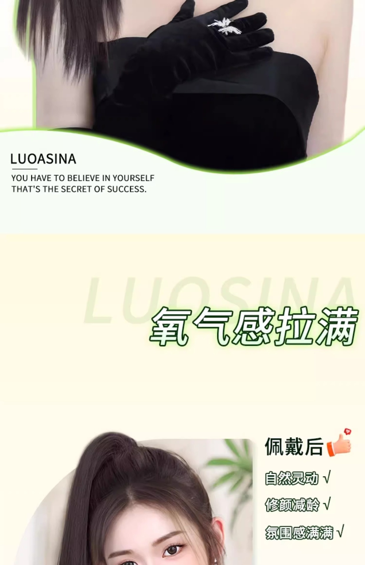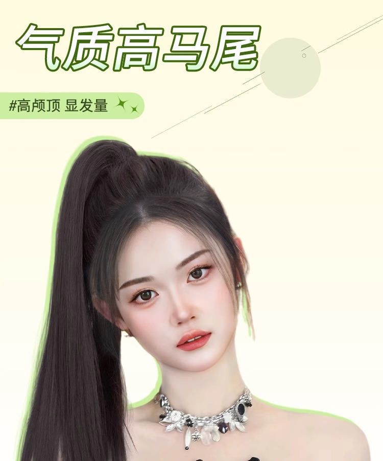 偽のポニーテールの韓国系の元気なポニーテールの側はポニーテールを刺します。