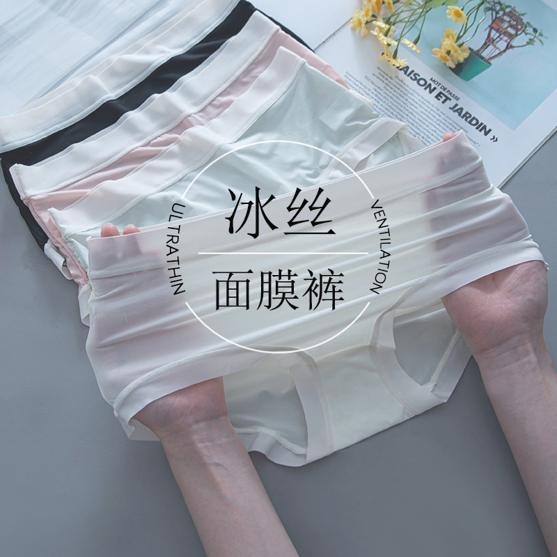 氷糸無痕下着女子夏超薄速乾通気中腰抗菌爆金少女学生マスク三角ズボン