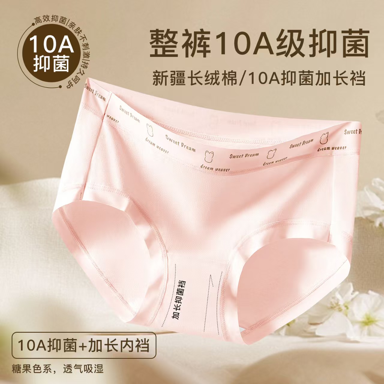 【抖音爆款】10A抑菌内裤女高弹舒适包臀三角裤新疆长绒棉加长裆