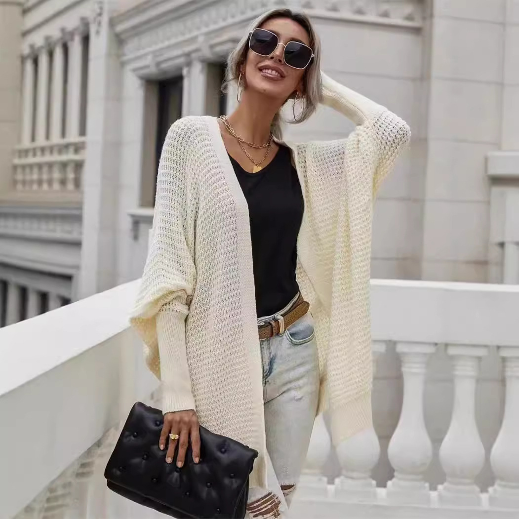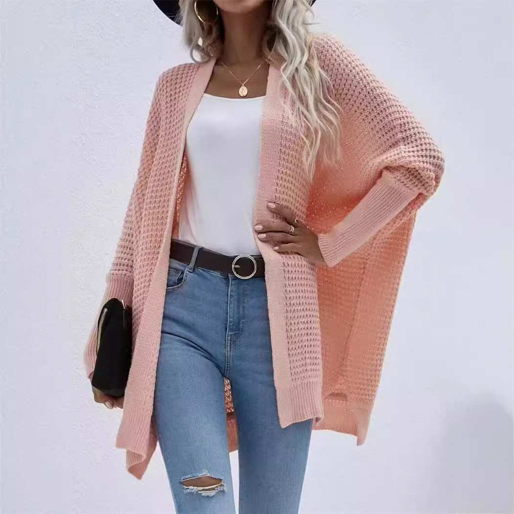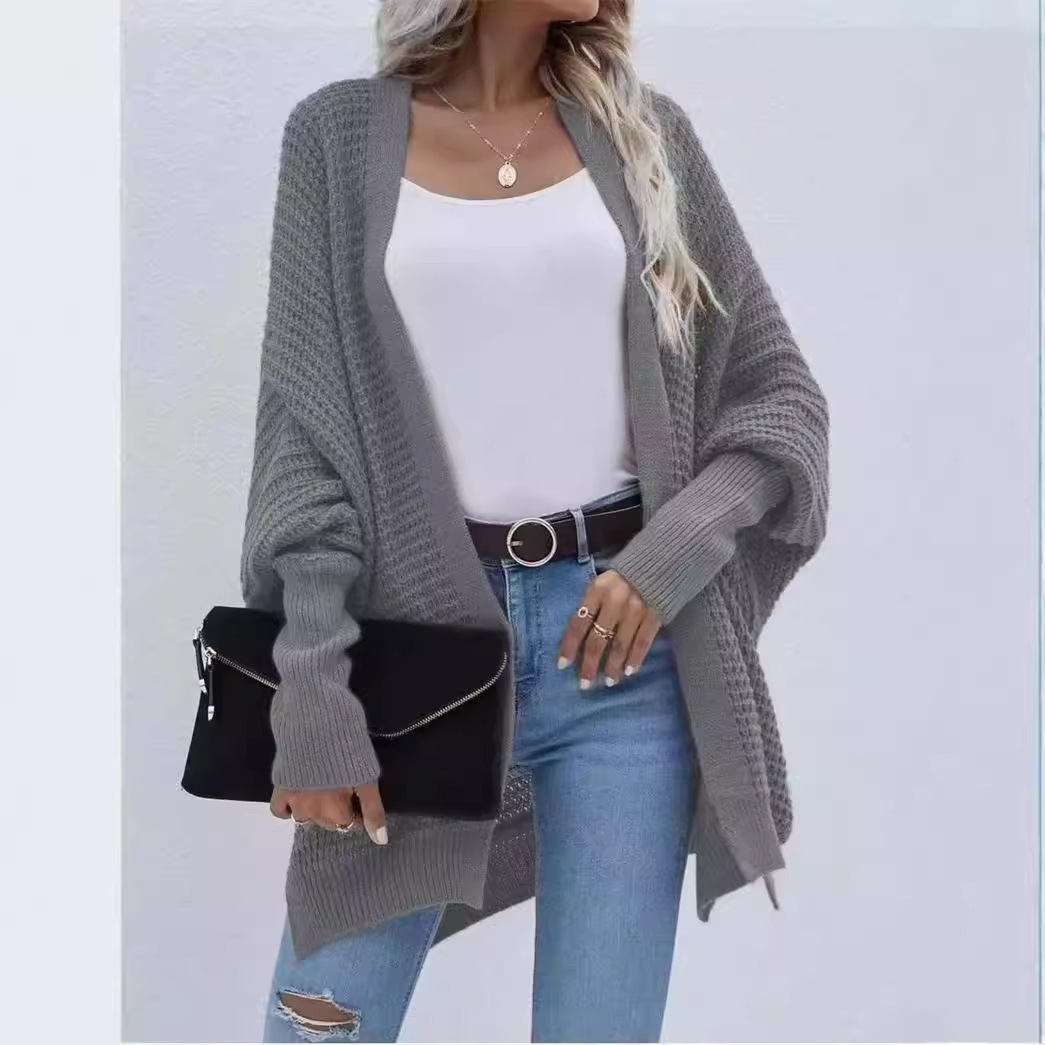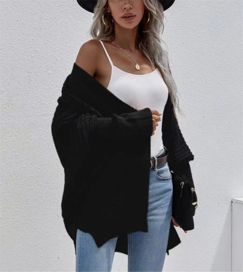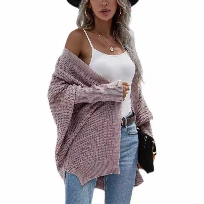 秋冬の女性向けの国境を越えた人気のセーター、新しい無地のルーズでレイジースタイルのランタンスリーブニットレディースカーディガンジャケット