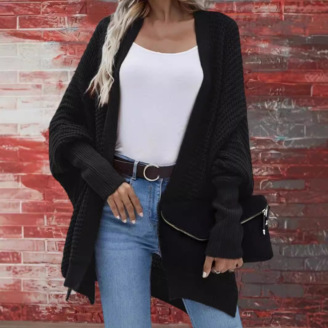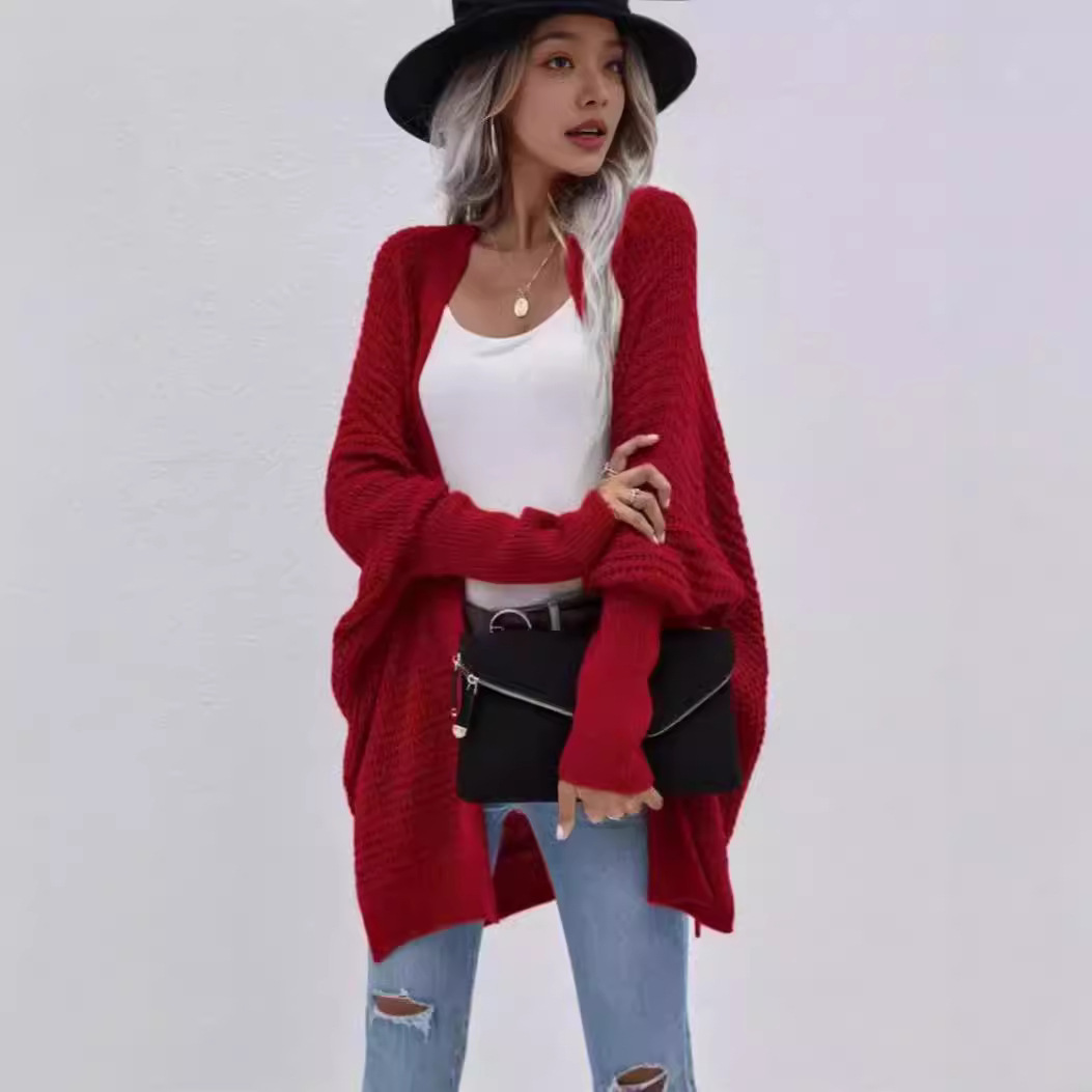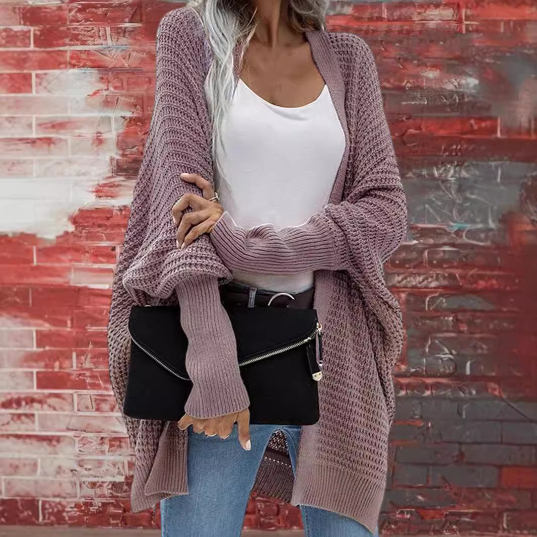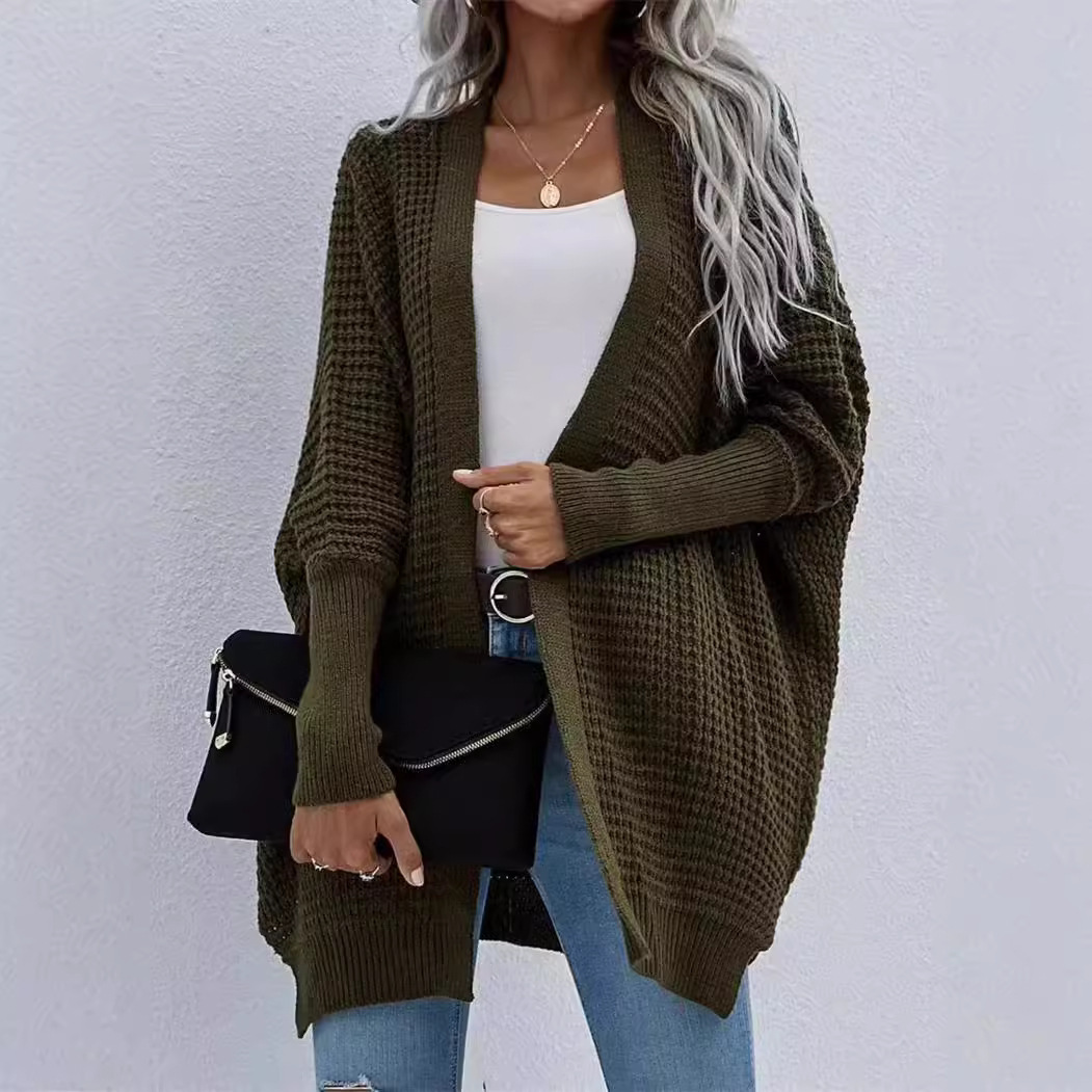 秋冬の女性向けの国境を越えた人気のセーター、新しい無地のルーズでレイジースタイルのランタンスリーブニットレディースカーディガンジャケット