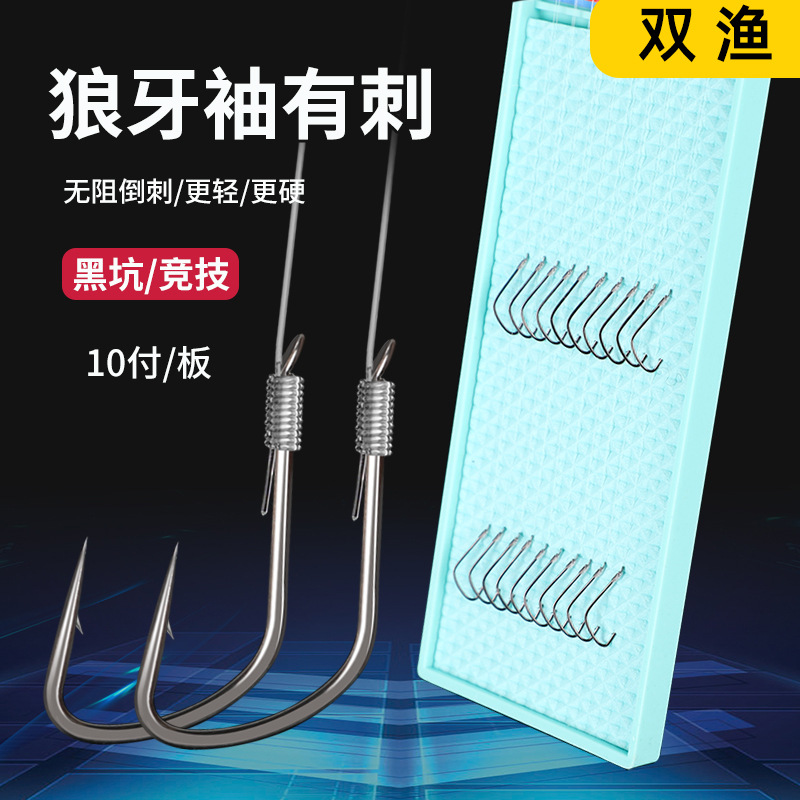 35厘米狼牙袖子线钩竞技双钩绑好成品野钓鲫鱼钩有刺鲫鱼钓鱼钩