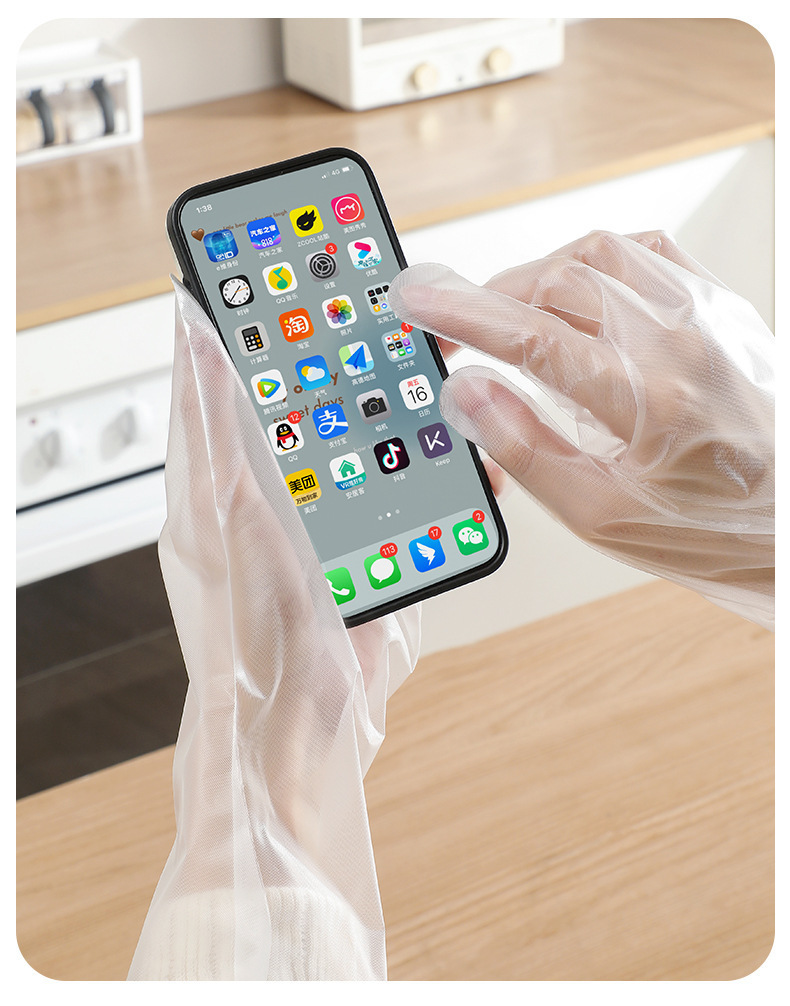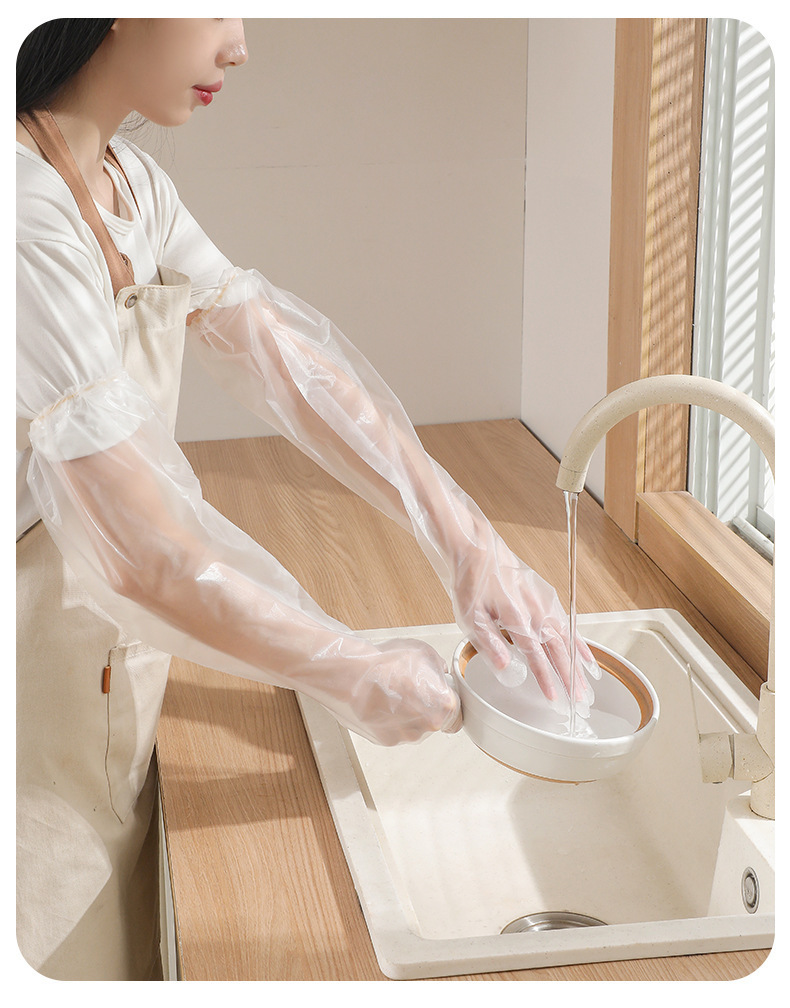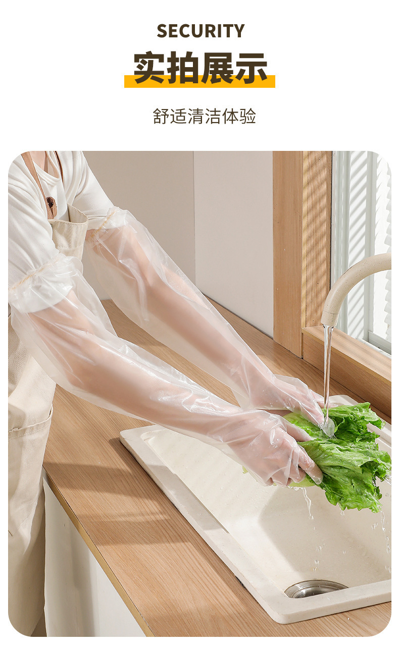 CPE长臂手套家务厨房洗碗清洁加厚加长贴手防水手套一次性食品级