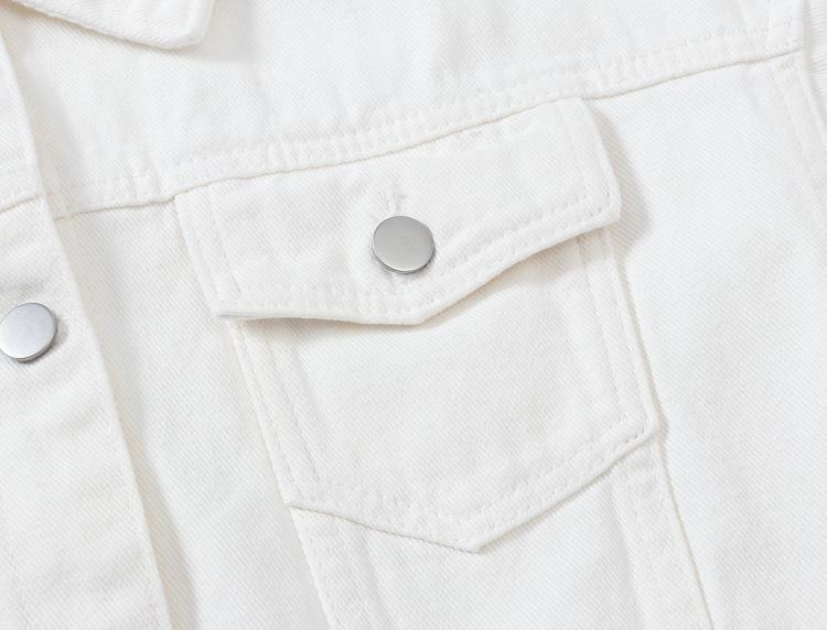 デニムの上着の秋の女性の白いデニムのコートの婦人服のゆったりした春と秋の2024の短い長袖のジャケットの餃子