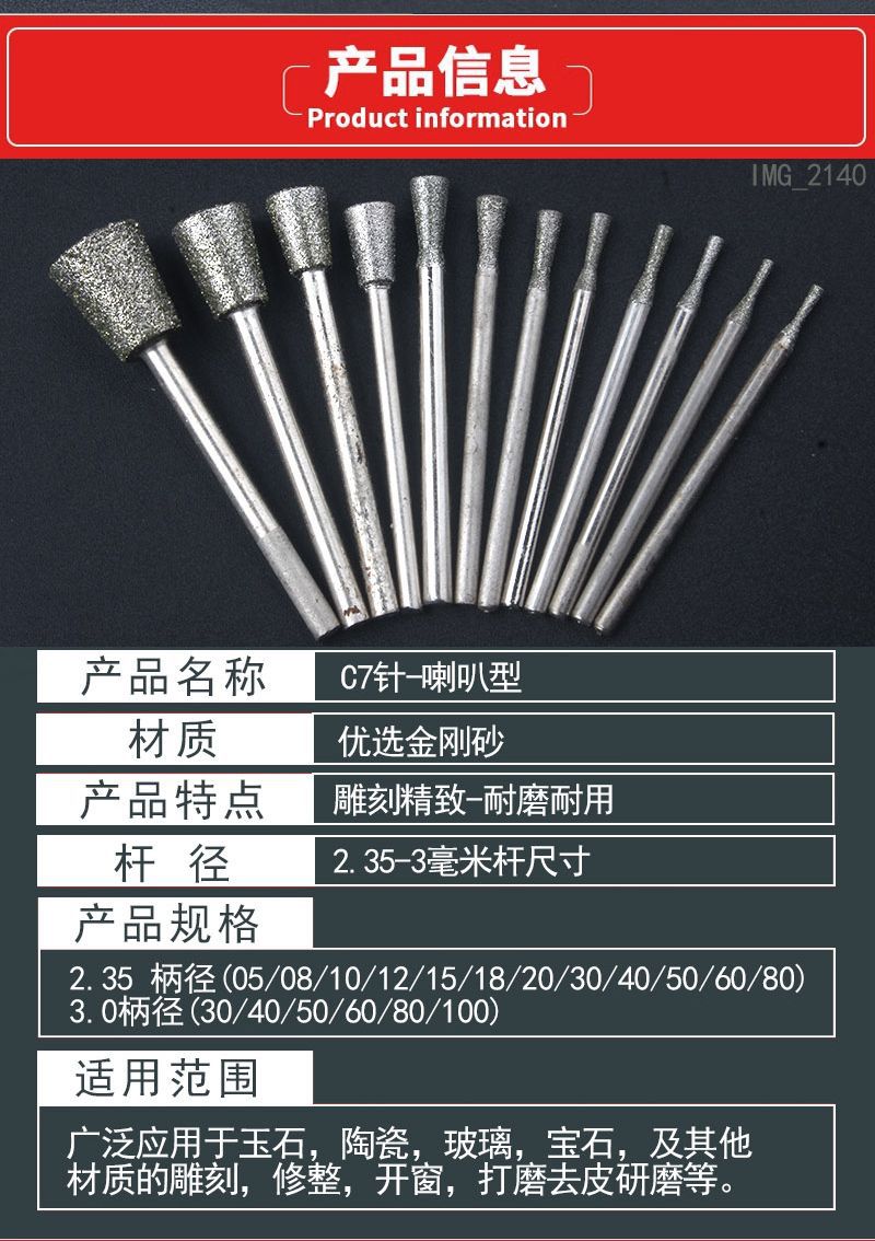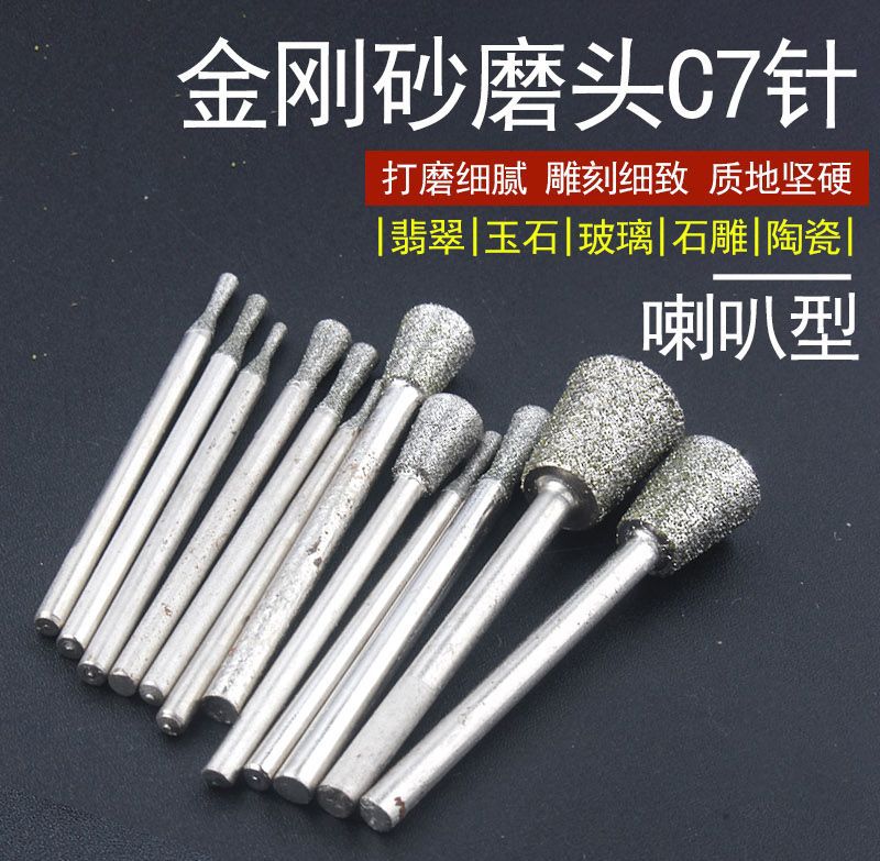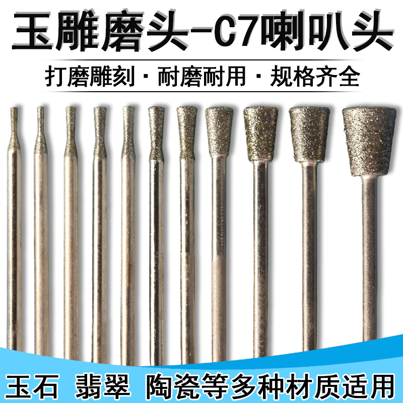 玉彫磨針c 7針ラッパヘッド逆台形翡翠研磨玉彫刻刀石材彫刻字研磨ヘッドメーカー