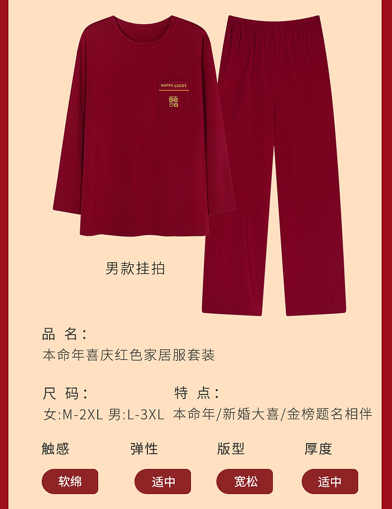 大红情侣长袖套头睡衣结婚高级感纯棉长袖家居服本命年全棉家居服