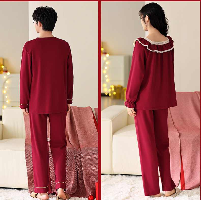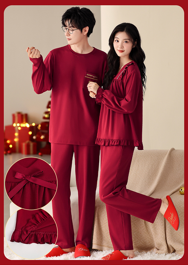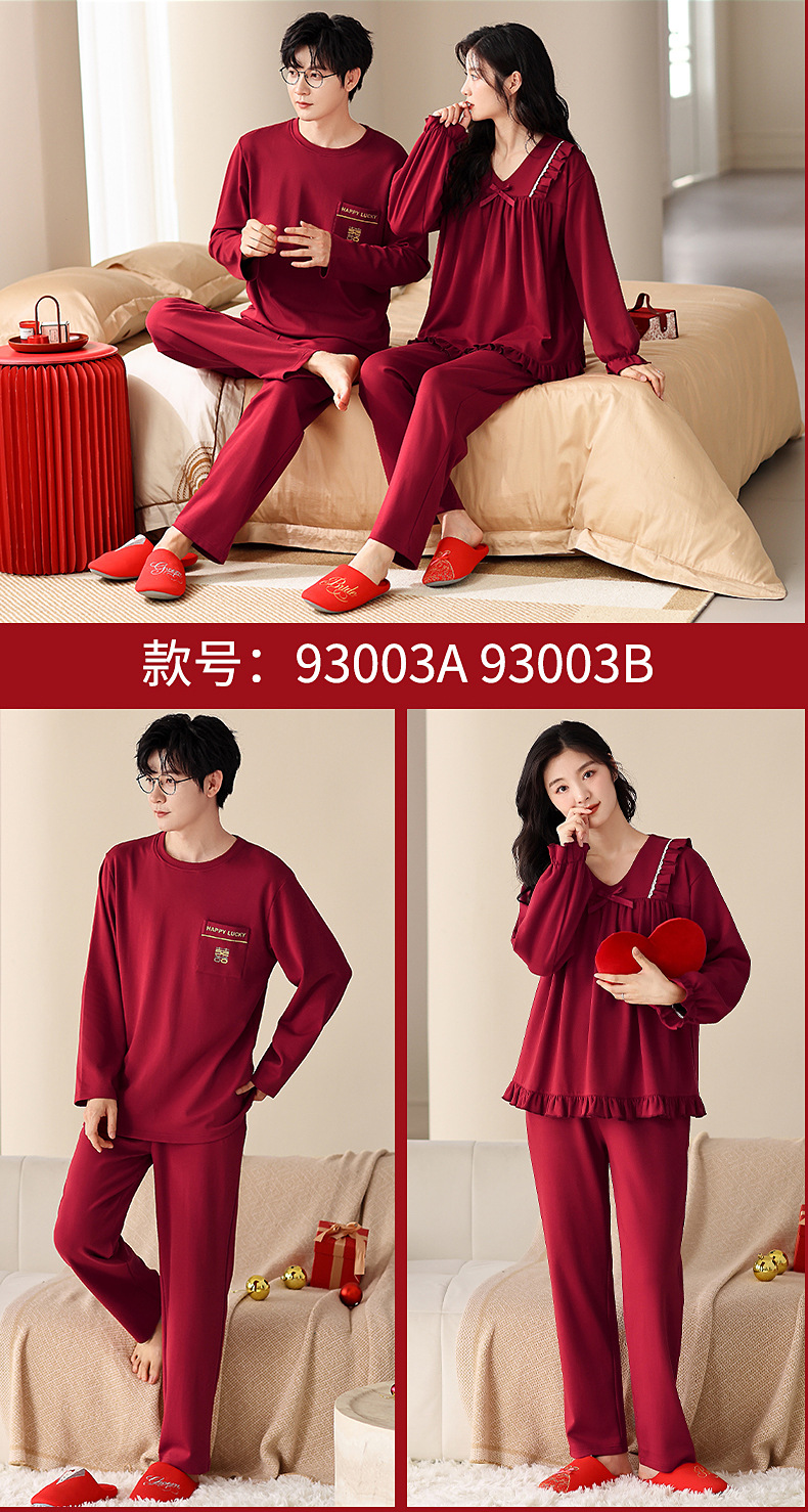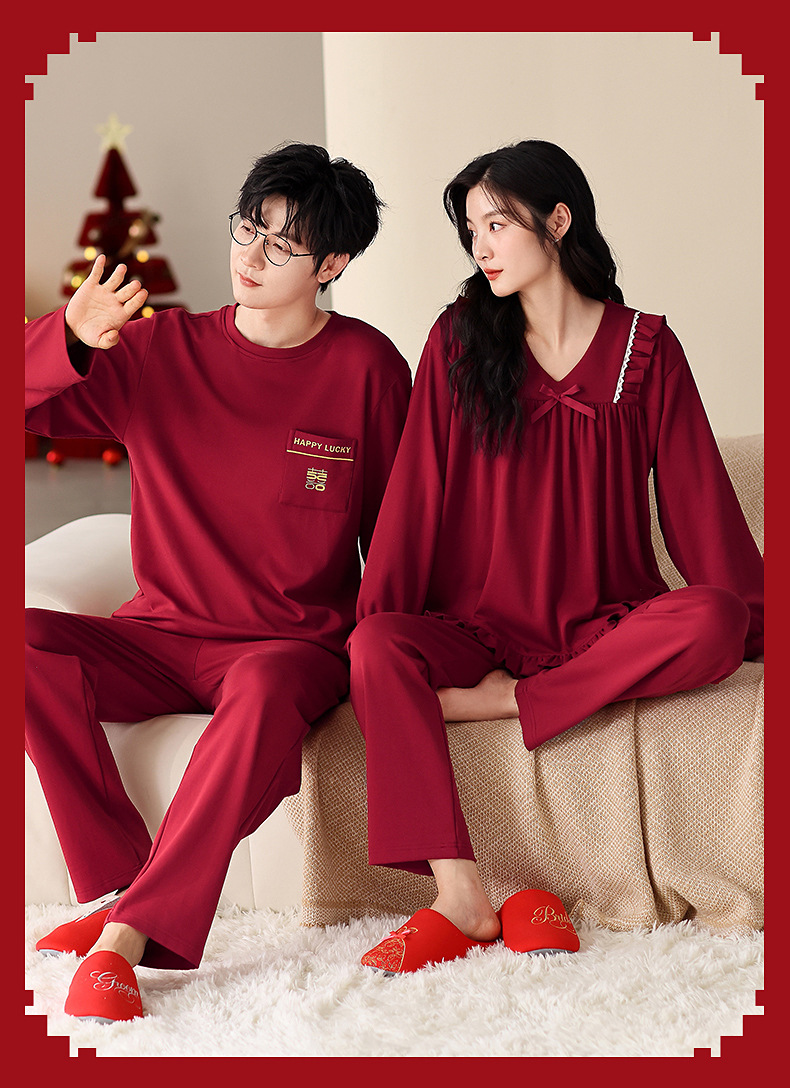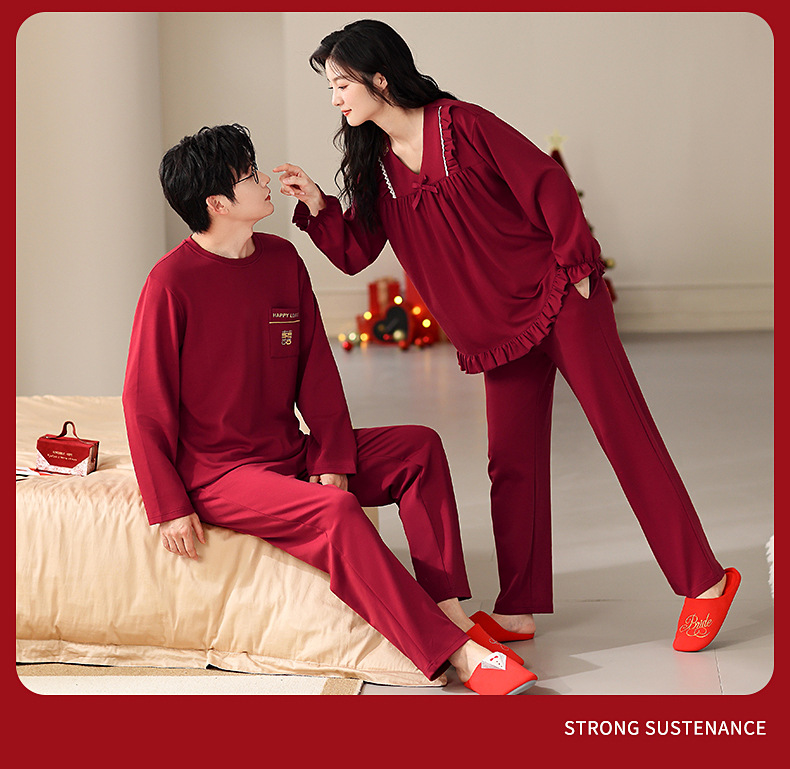 男性パジャマ結婚新婚カップルセット綿の赤い綿100% の家庭服女性春秋冬長袖セット