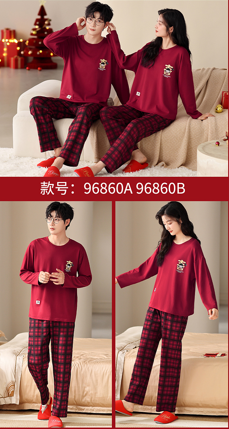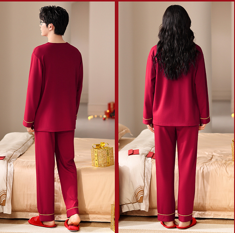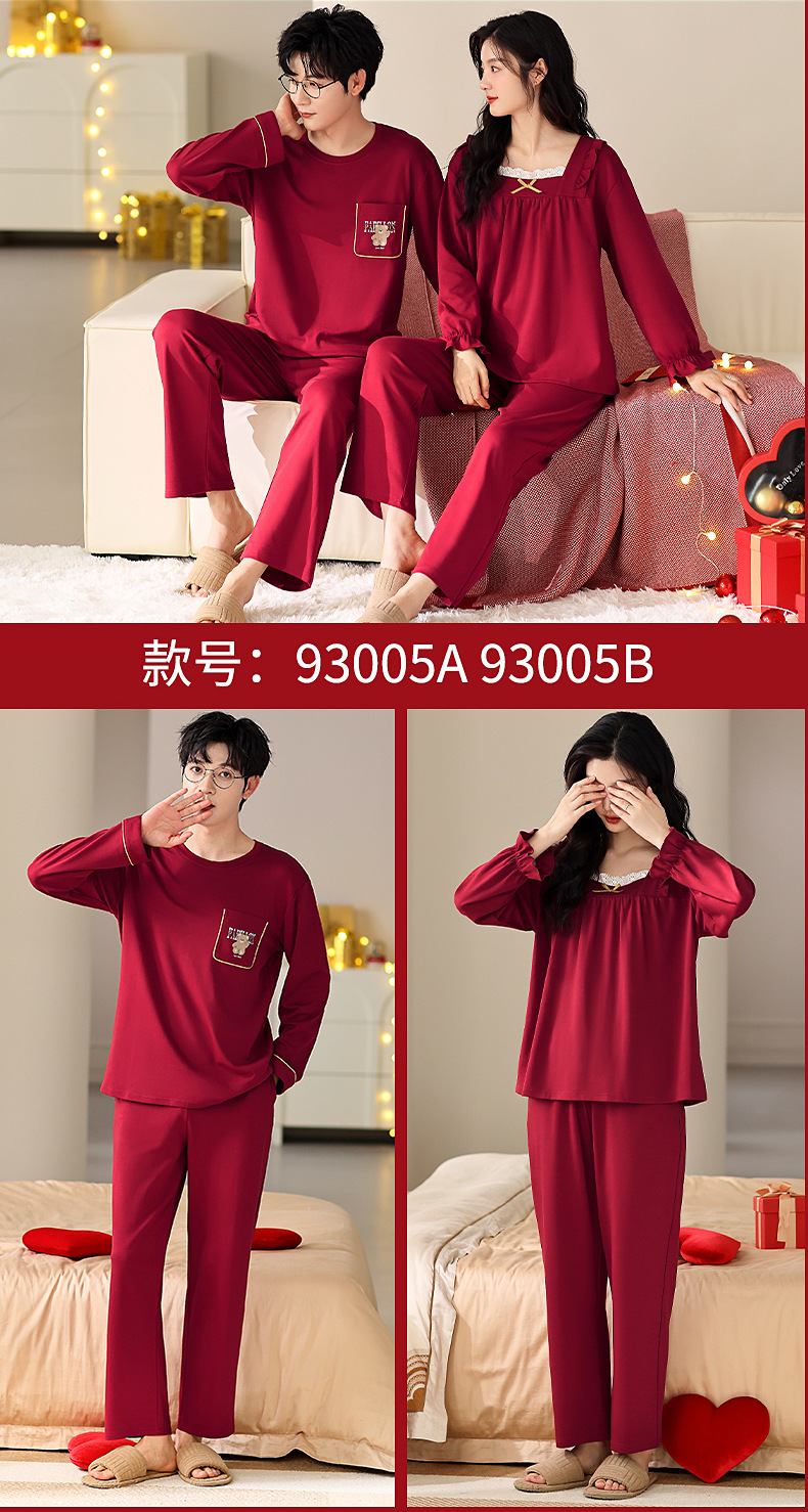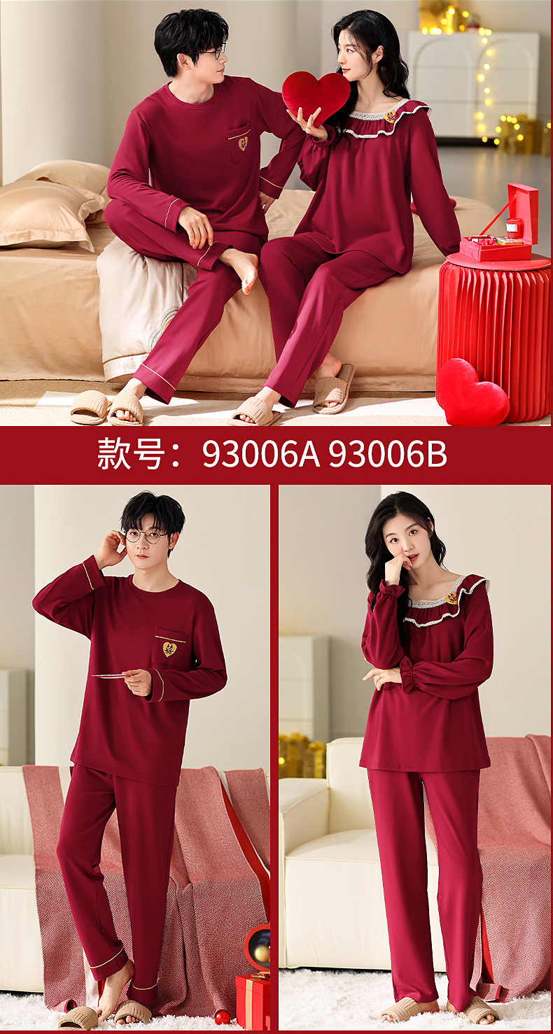男性パジャマ結婚新婚カップルセット綿の赤い綿100% の家庭服女性春秋冬長袖セット