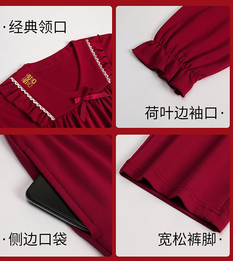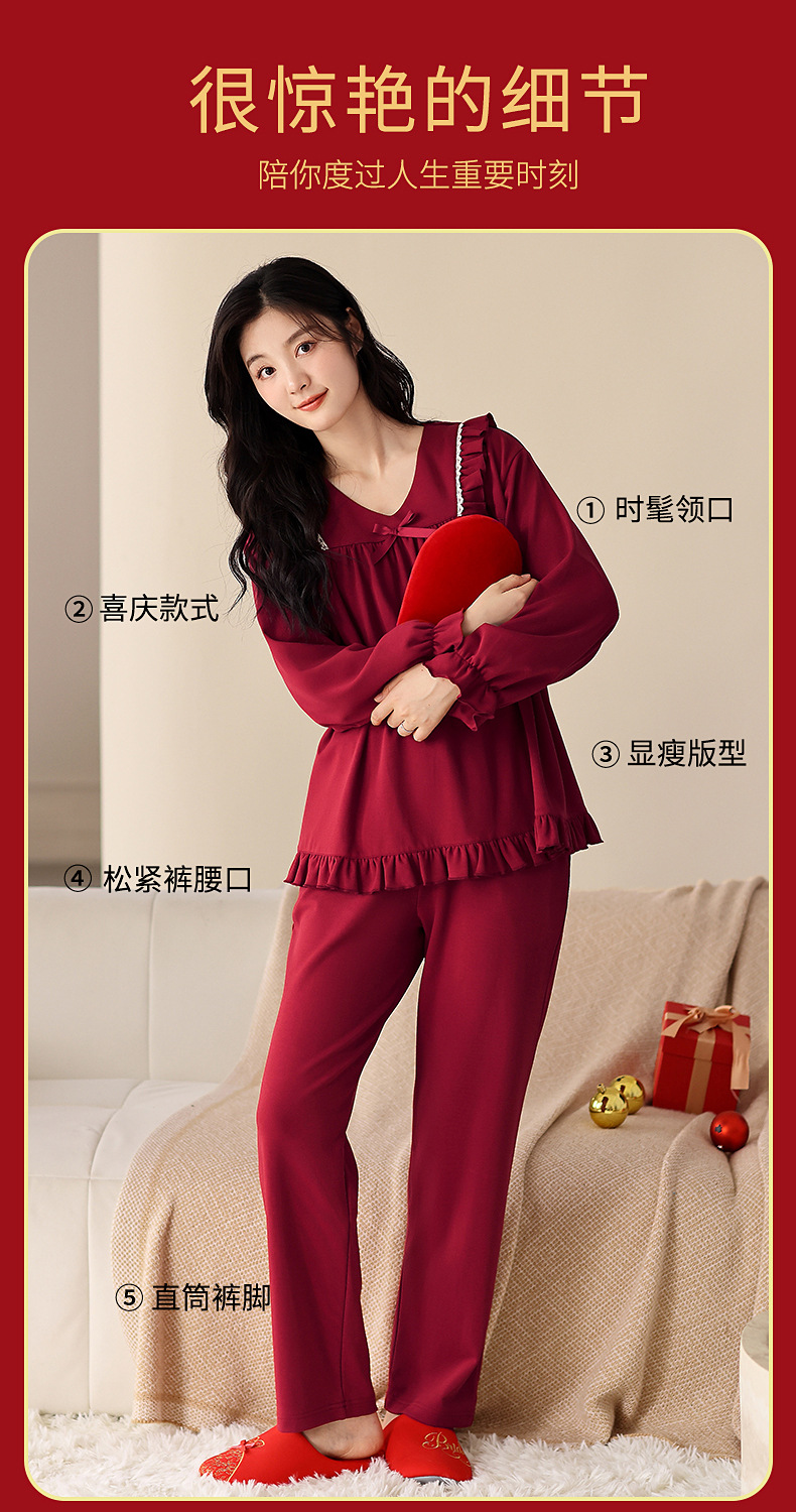 秋の大きな赤い結婚式パジャマ女性の結婚式の干支年スーツ長袖ズボンカップル新婚ホームウェアホットスタイル