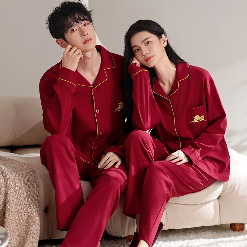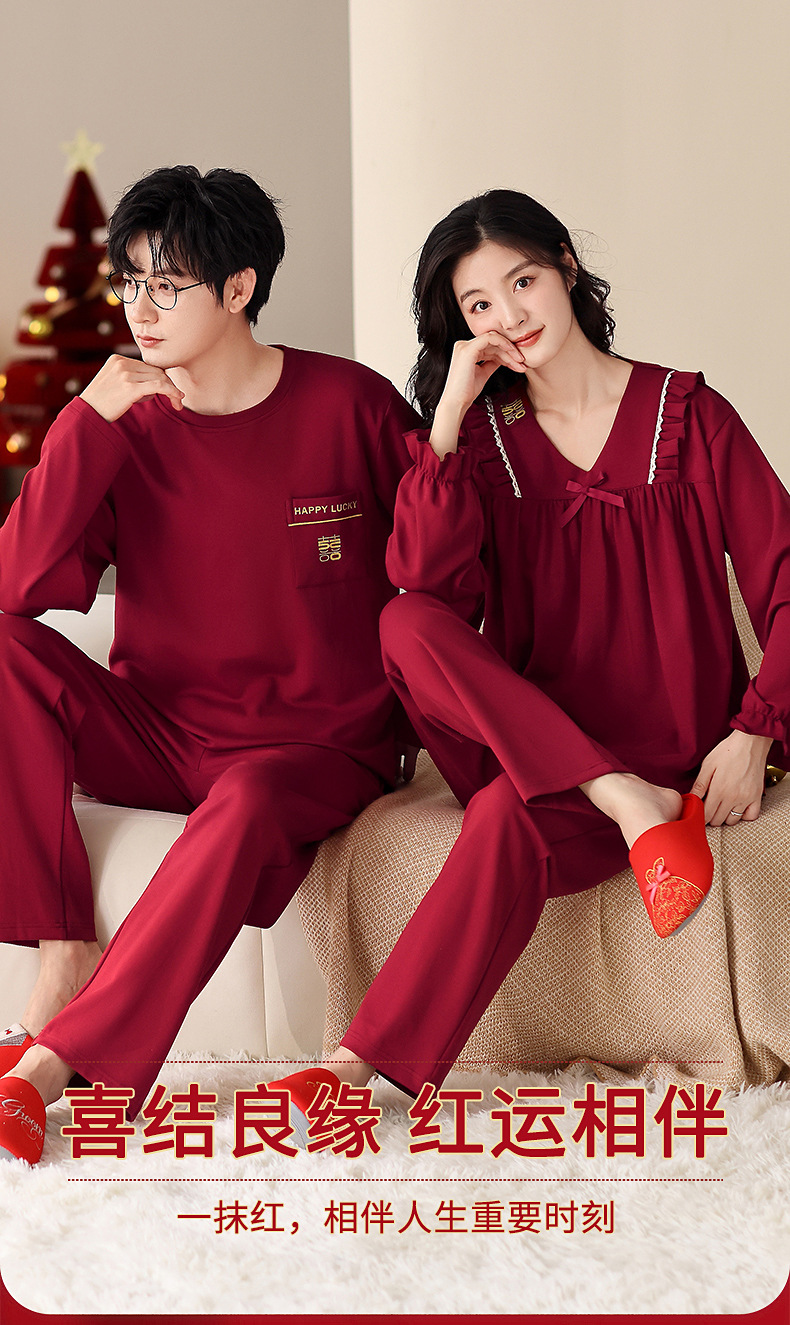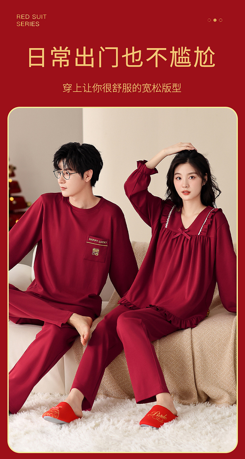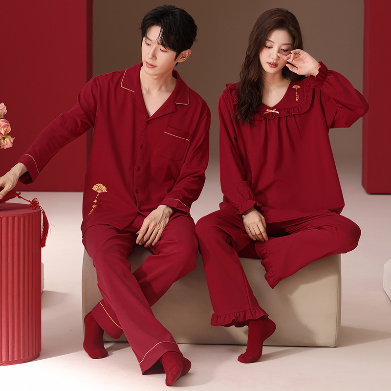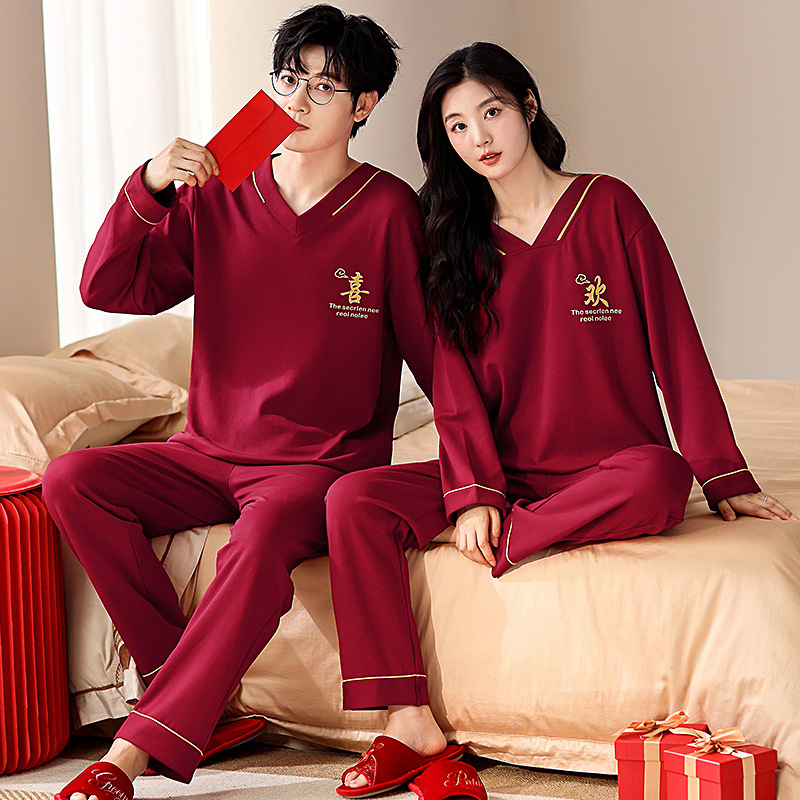 パジャマ結婚新婚カップルセット赤い純綿の新型男性と女性の本命年綿長袖ホームウェア