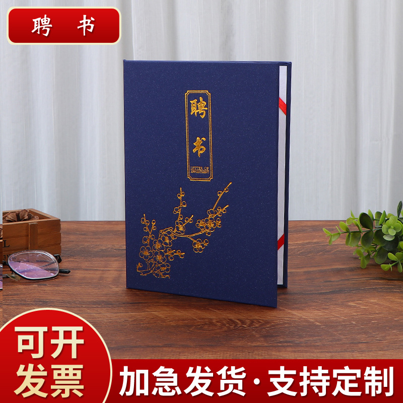 现货聘书烫金梅花款荣誉证书结业证书奖状内芯设计打印LOGO证书