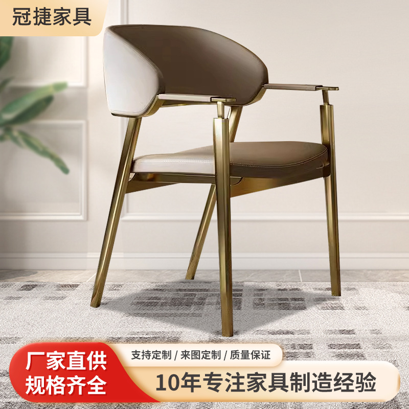 イタリアのライト高級ダイニングチェアミニマリストポストモダンホームバックチェアステンレス鋼パーソナライズされたクリエイティブアームレストチェア