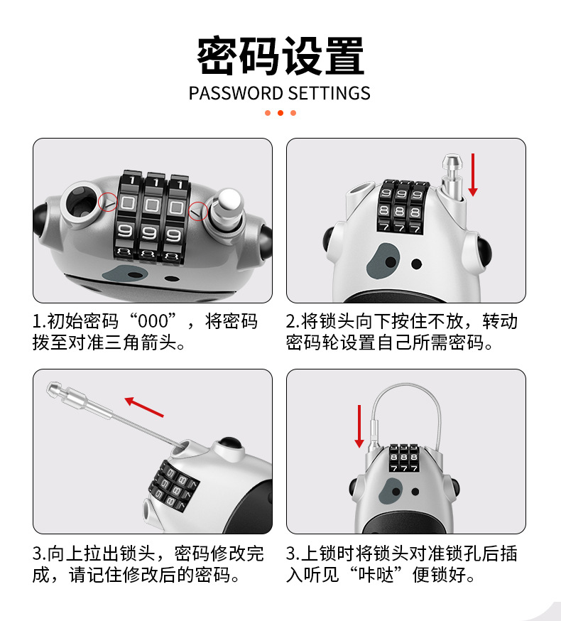 ミニ格納式ワイヤーロープパスワードロック旅行盗難防止セキュリティロック電気自動車ヘルメットロック拡張ケーブル南京錠