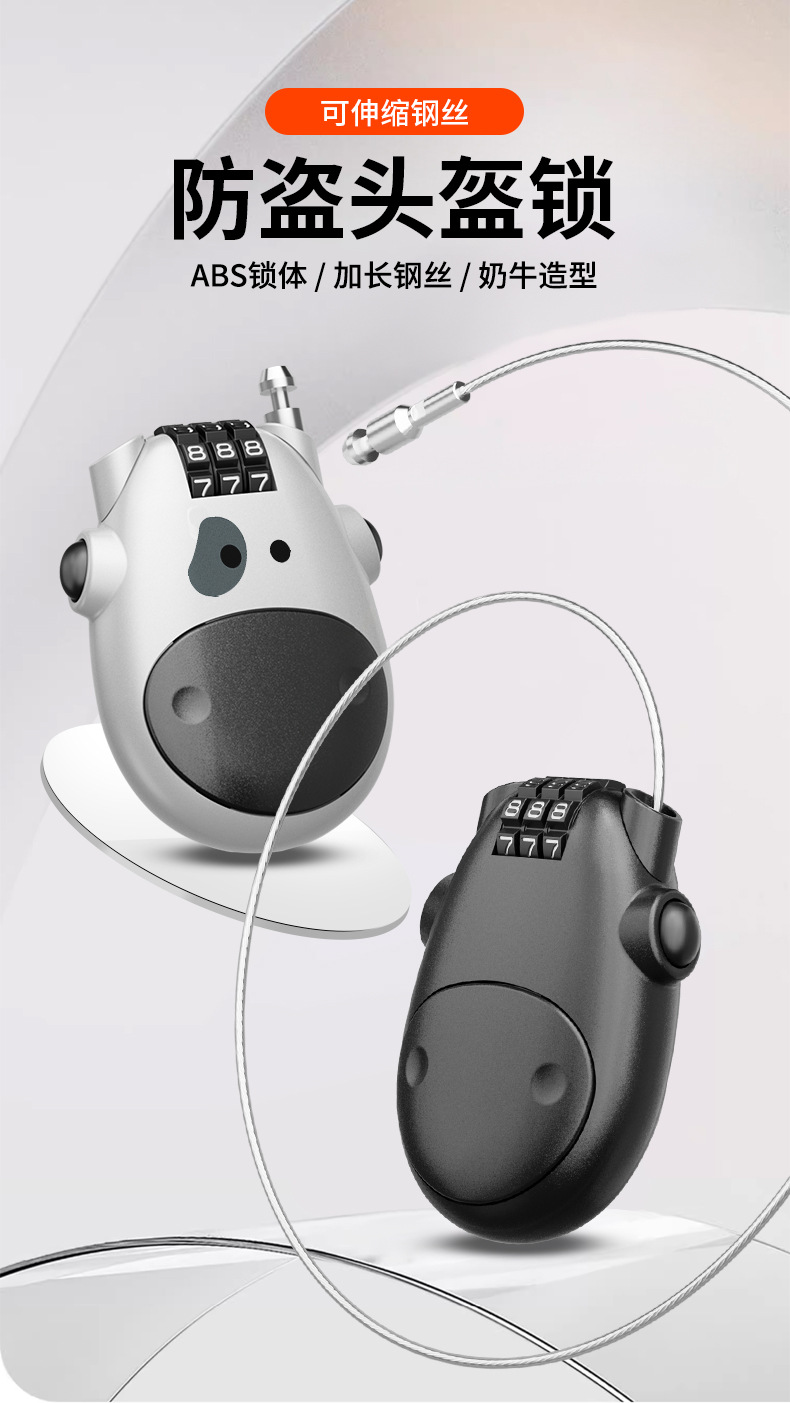 オートバイバッテリー車盗難防止ヘルメットロック漫画牛パスワードロック自転車紛失防止伸縮ワイヤーロープポータブル