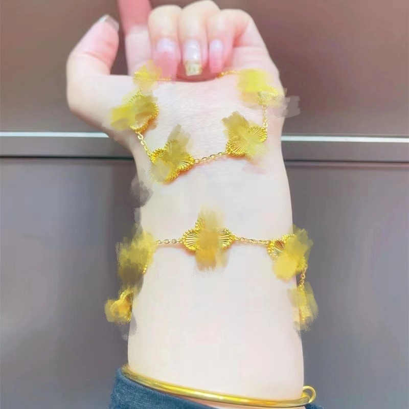 ベトナムサンドゴールド五つ葉のクローバーブレスレット女性用模擬ゴールドラッキーグラスレーザーゴールドカラーファッションライト高級ハイエンド