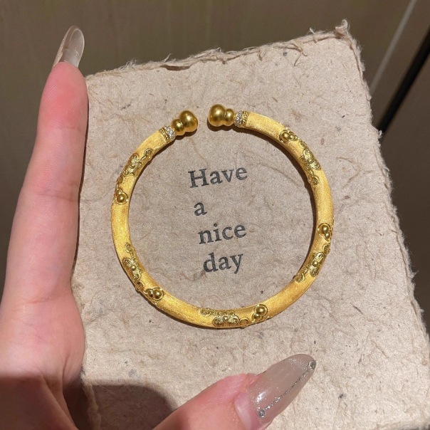 高級感のあるゴールドのブレスレット、美しいデザインで個性的なアクセサリー、中国風ファッション、彼女へのプレゼントに最適