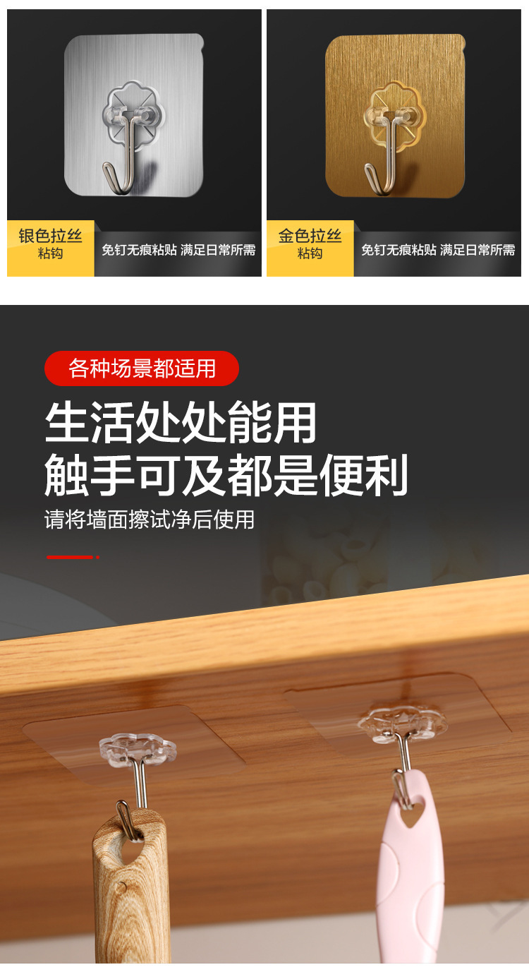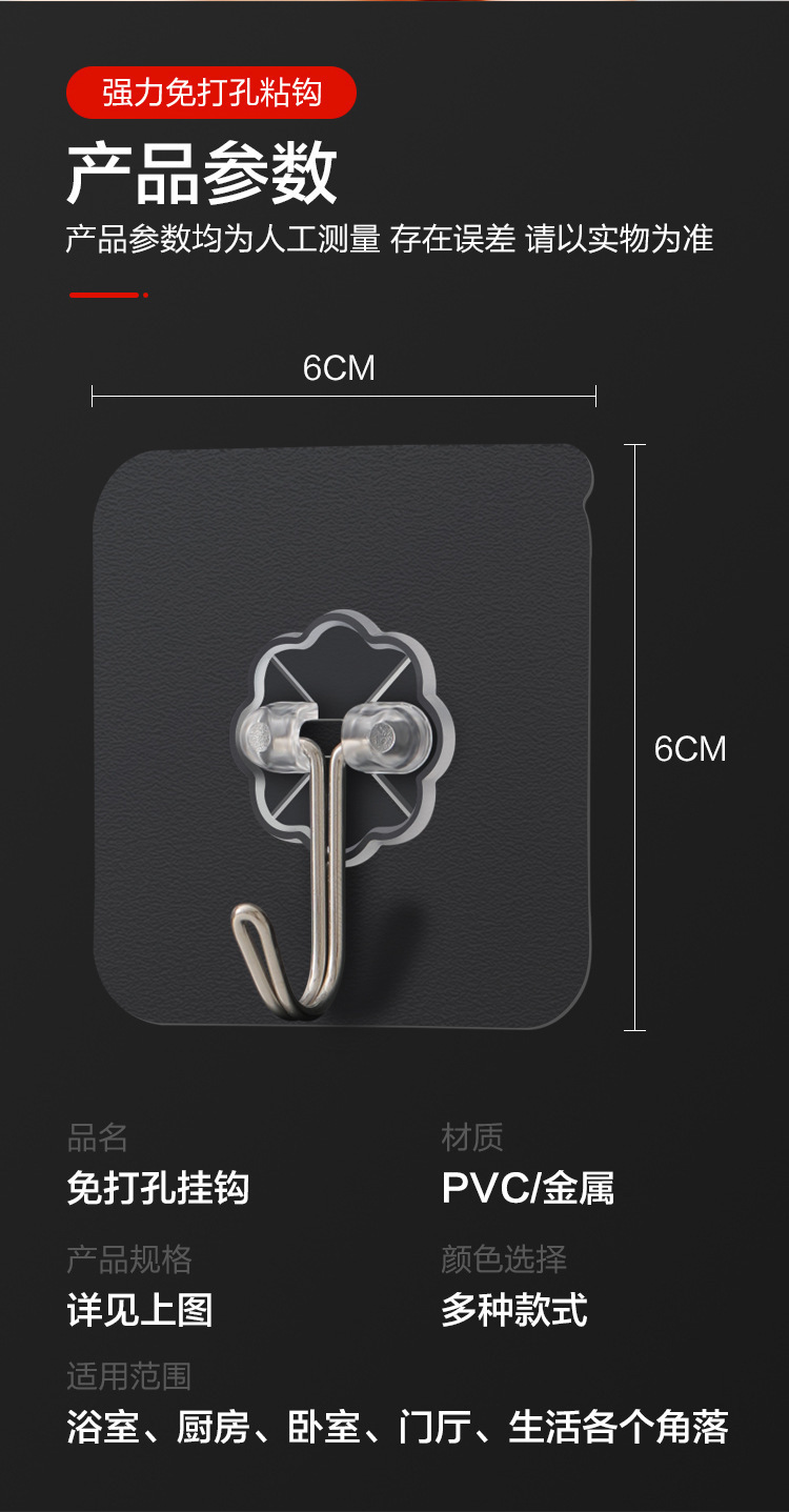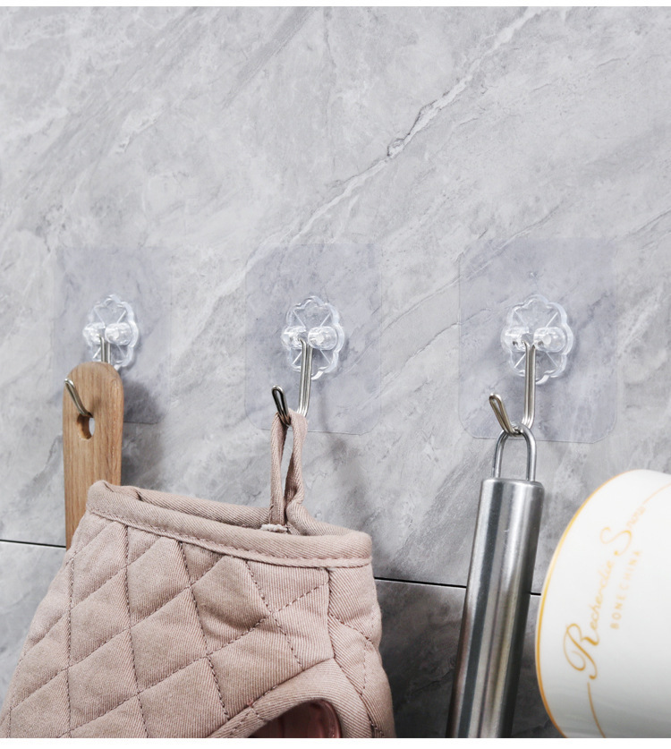 実力メーカー透明穴なしフック強力フック無痕フック浴室キッチンフードドア後接着
