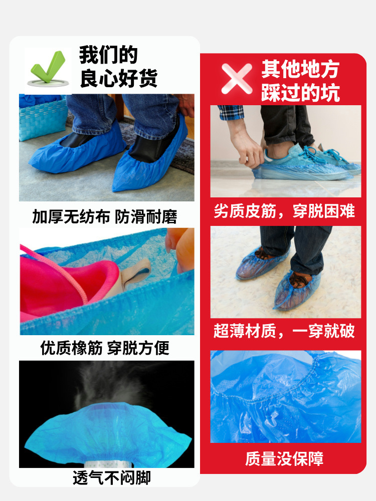 青い使い捨て不織布靴カバー厚い不織布滑り止め靴カバー使い捨て卸売り100衛生家庭用