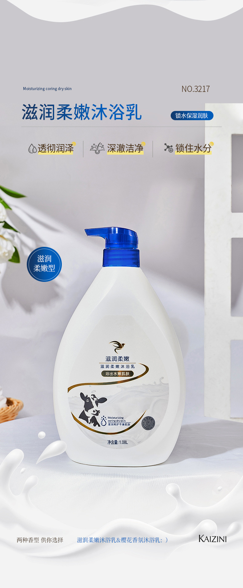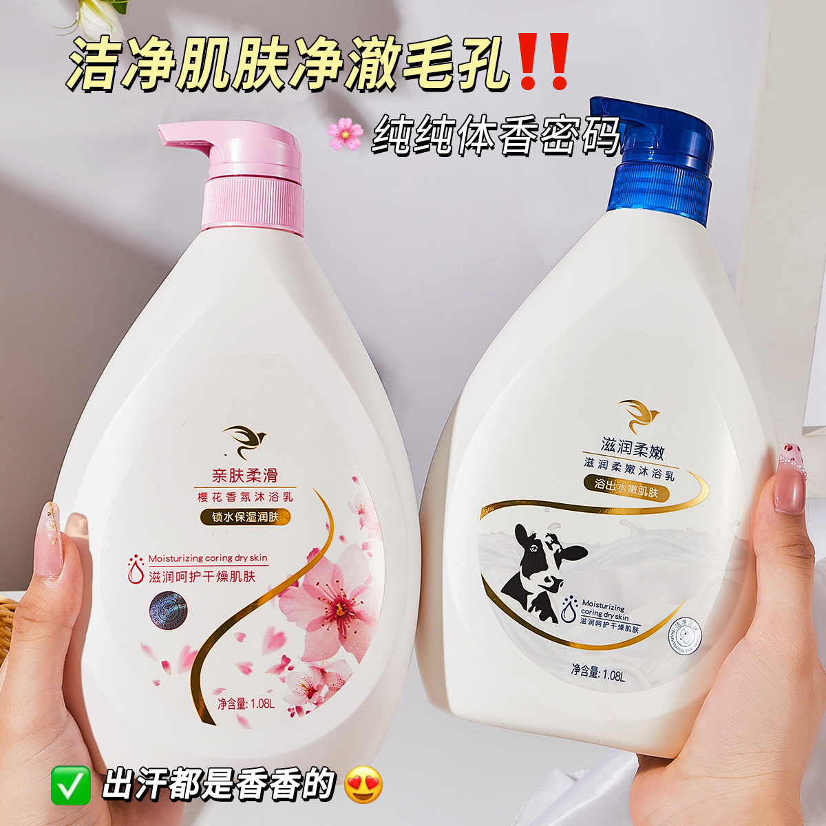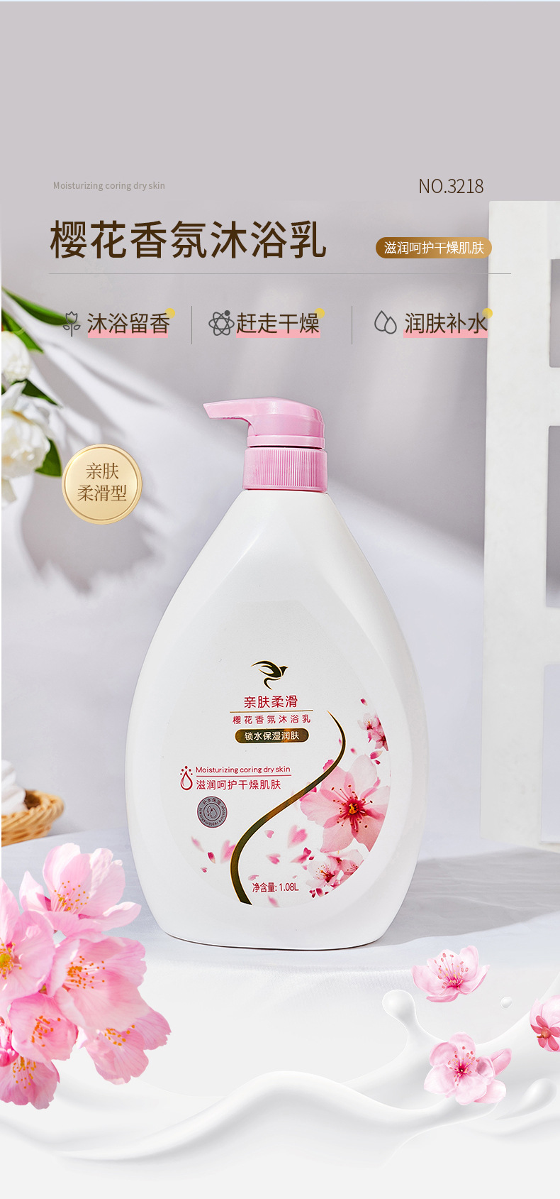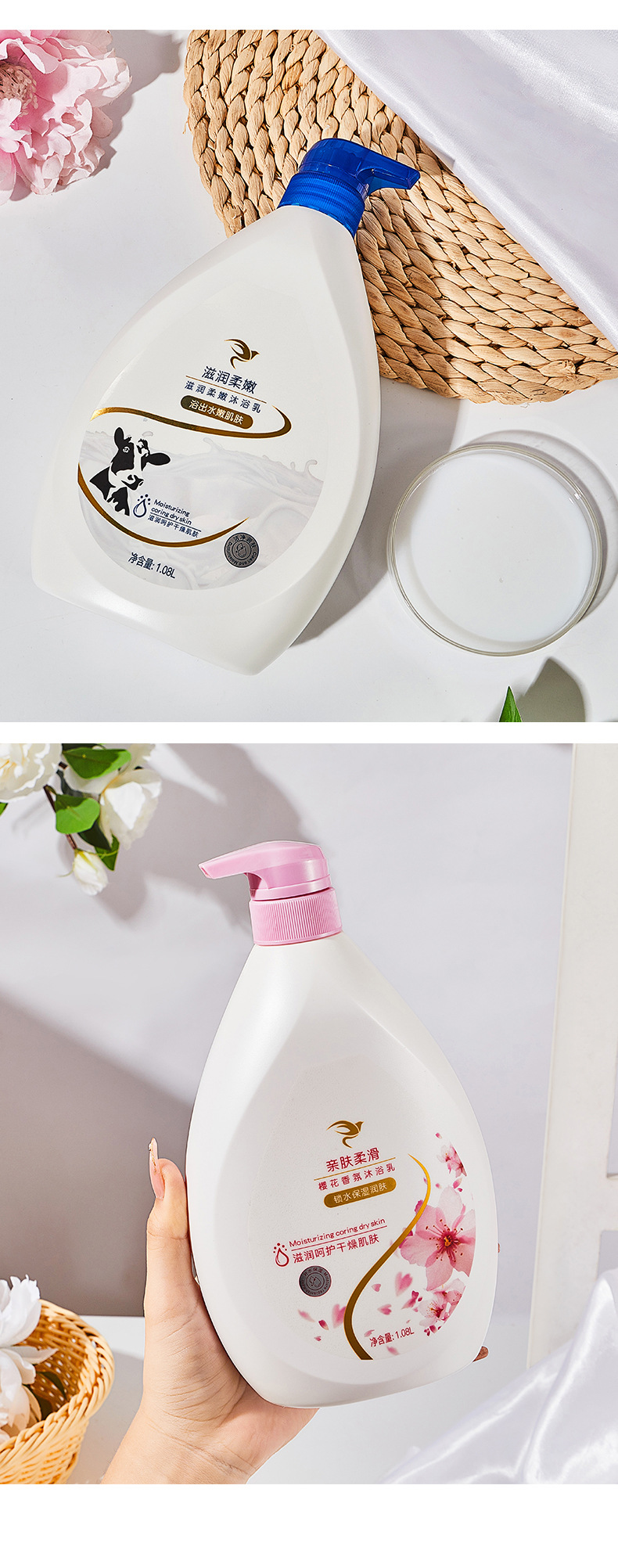 滋润柔嫩沐浴乳美肤深层沐浴露持久留香正品樱花牛奶香家庭装批发