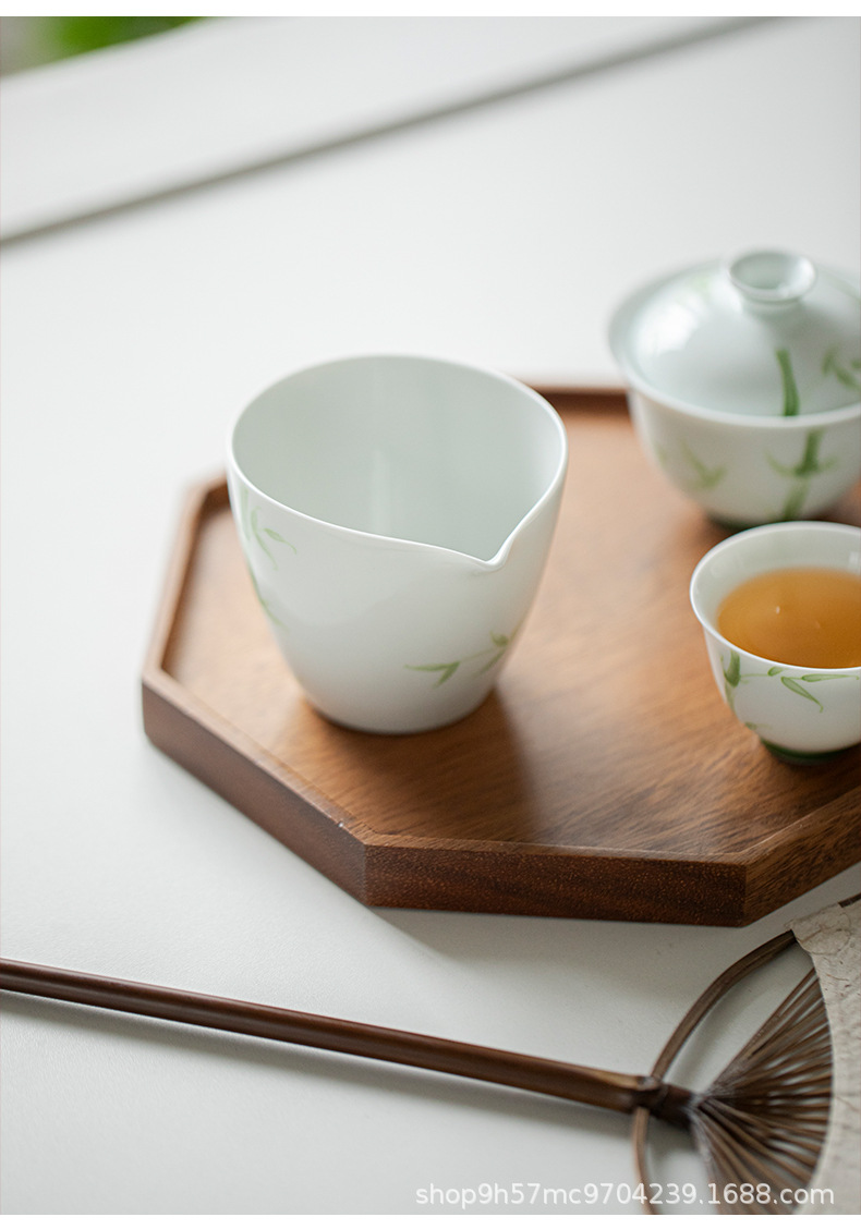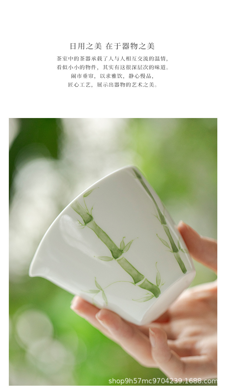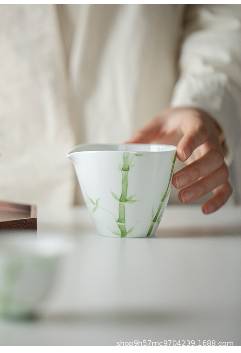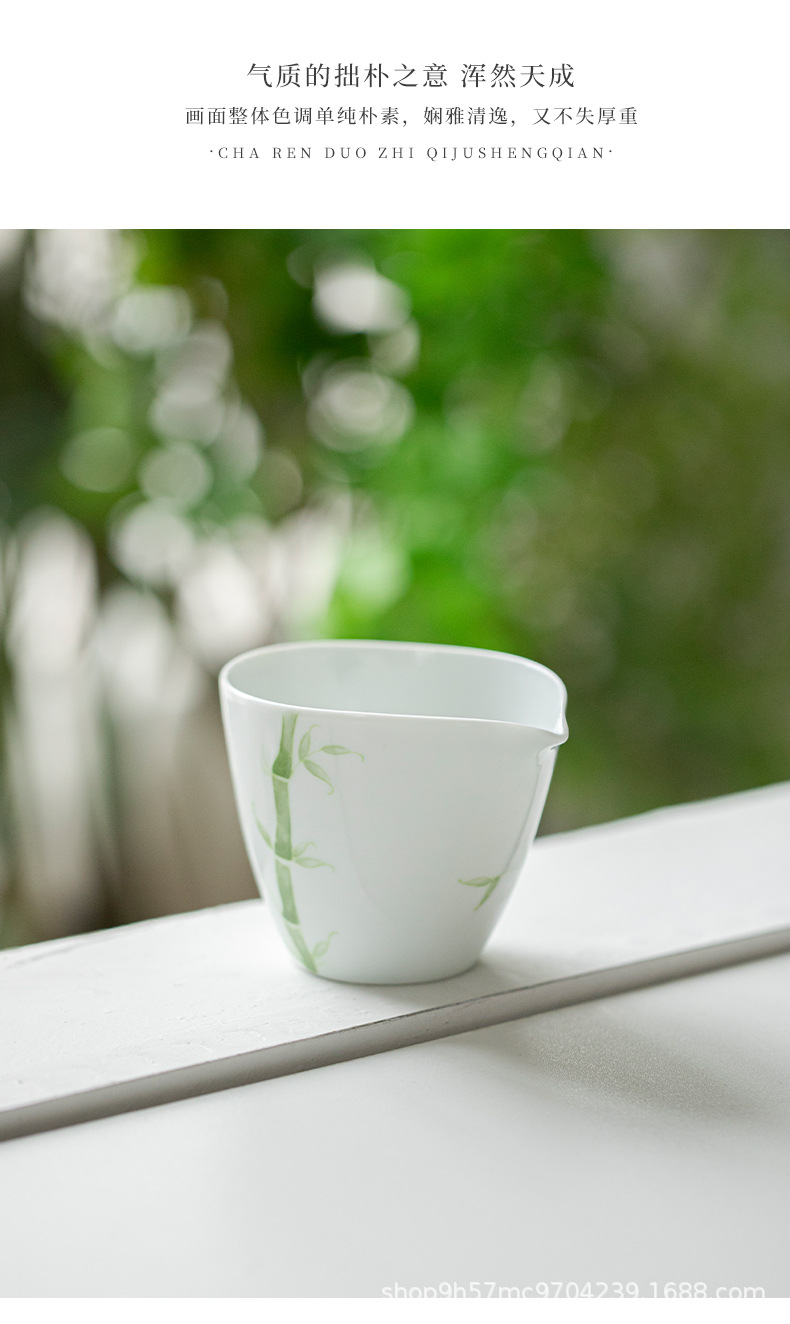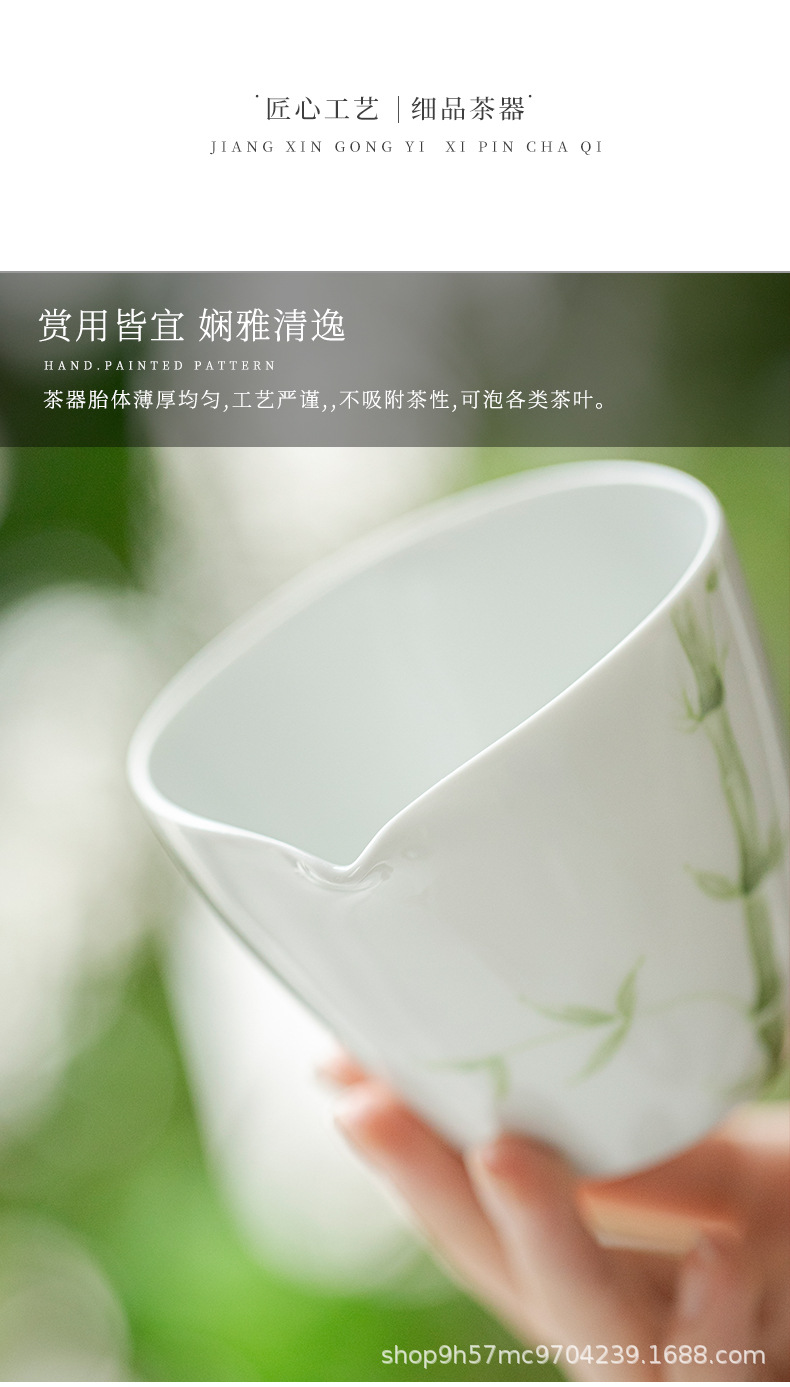 禧マグネシウム公道杯有田焼手描き青竹陶磁器分茶器家庭用専用泡茶白磁茶海部品