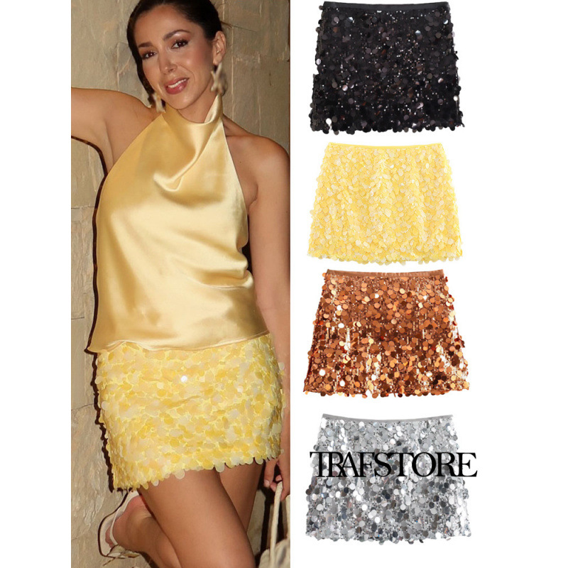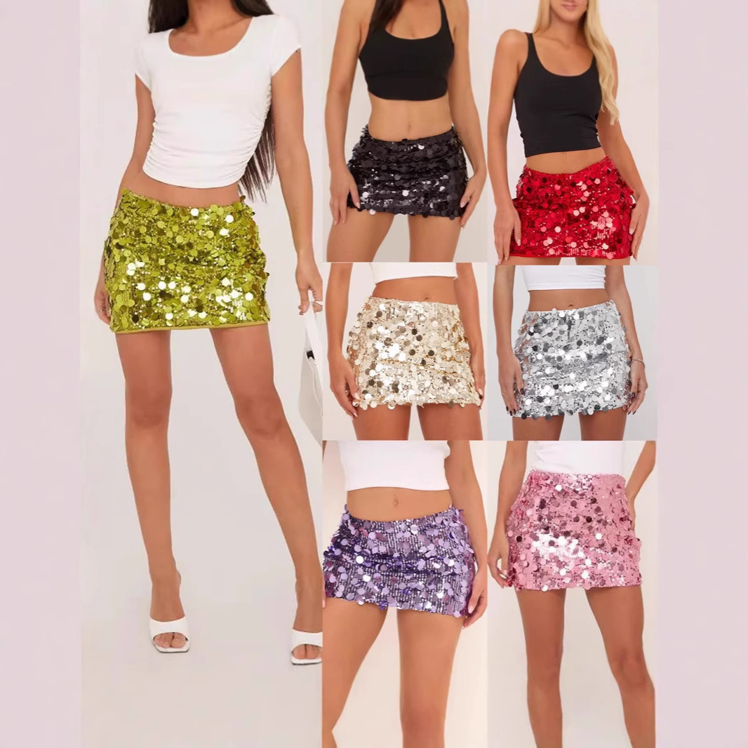 海外貿易卸売 夏の新作 欧米風クロスボーダー婦人服 エレガントで大人っぽいファッション スパンコールミニスカート