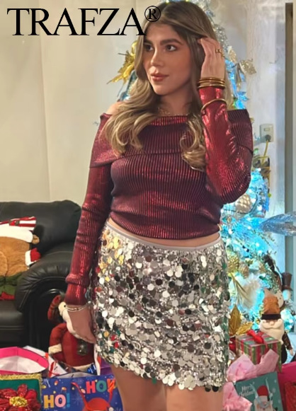 2025跨境欧美风女装批发秋冬气质轻熟时尚Party亮片迷你短裙