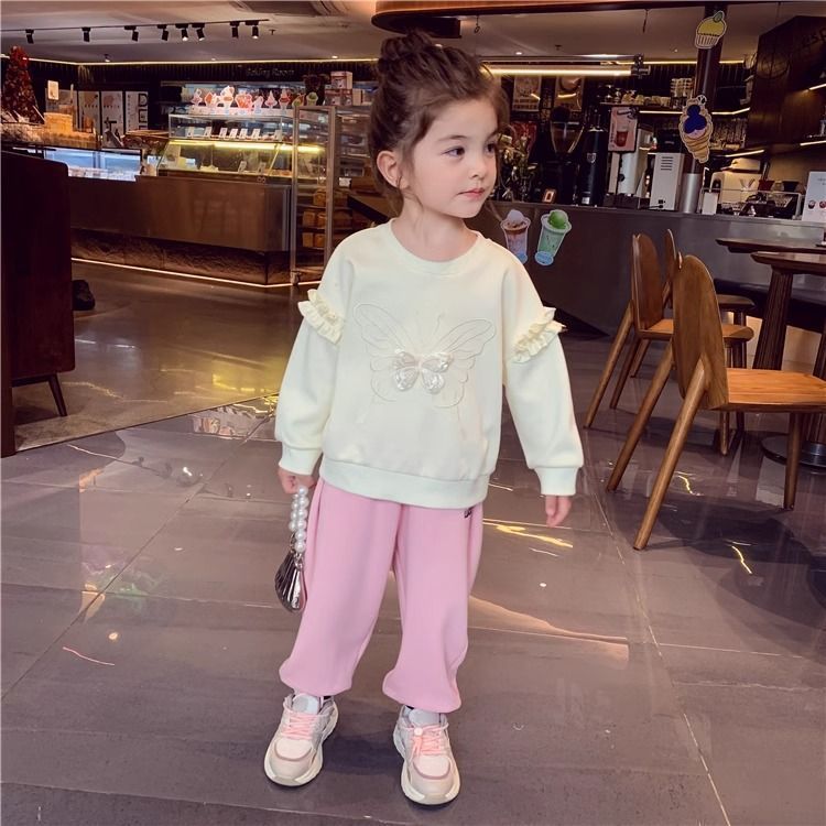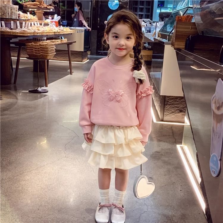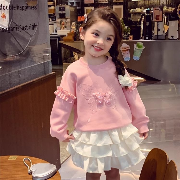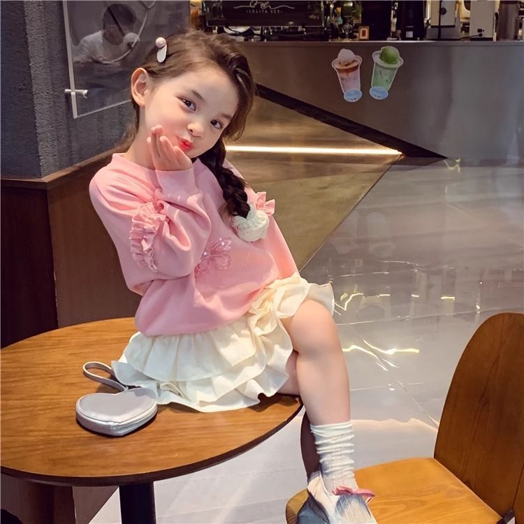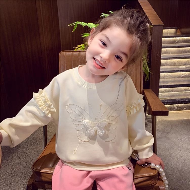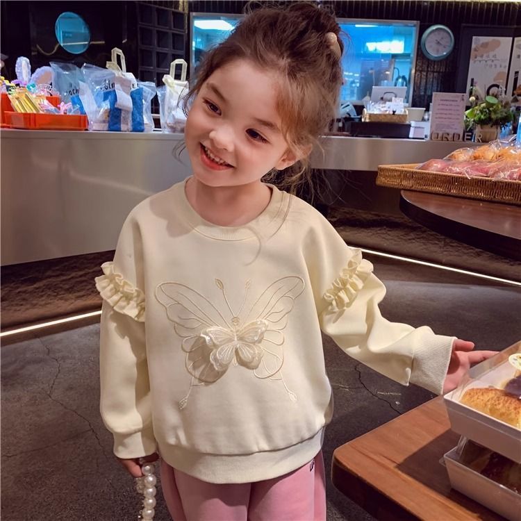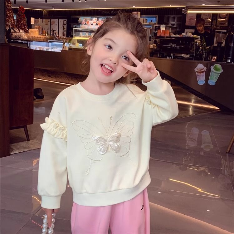 女の子の衛衣春秋服2025新型韓国版洋気子供蝶流行中大童女宝長袖上着