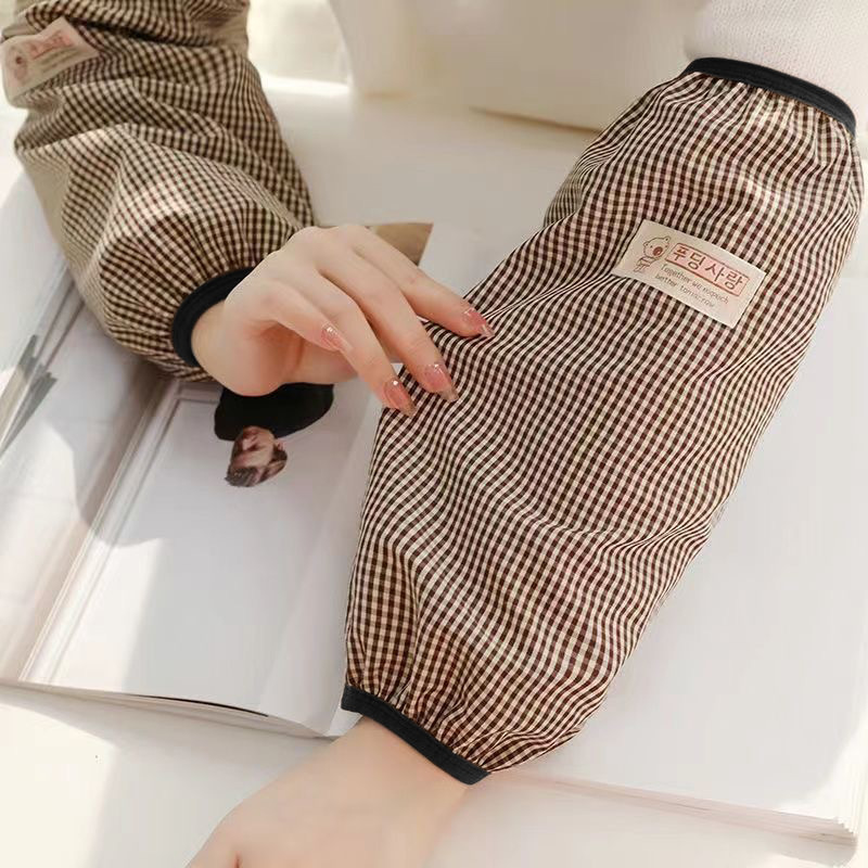 女性用の新しいチェック柄防水スリーブ、ファッショナブルなロングスリーブ、油汚れ防止家庭用スリーブ、大人と学生向けの卸売