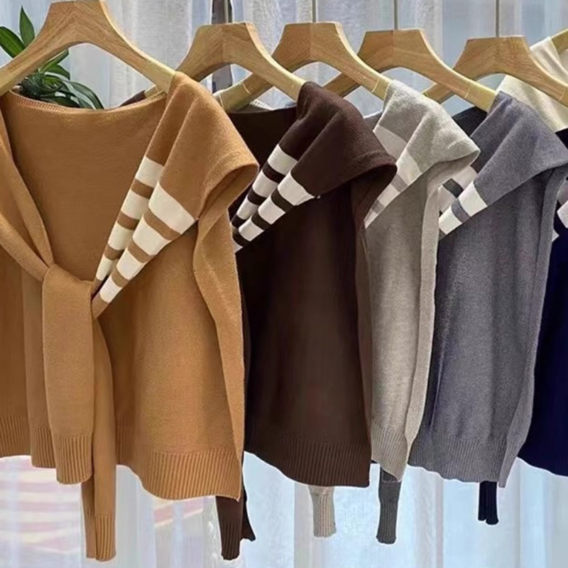 2025 インターネットセレブ春と秋のファッション多用途ニットショール女性の韓国スタイル無地スタックシャツクロススタイル結び目チョッキ