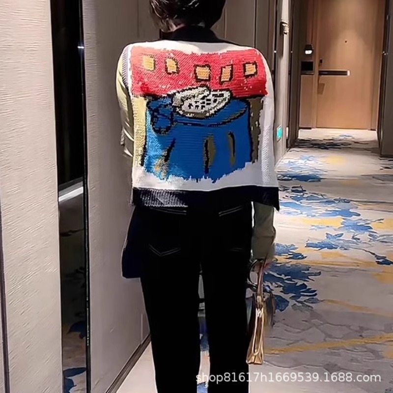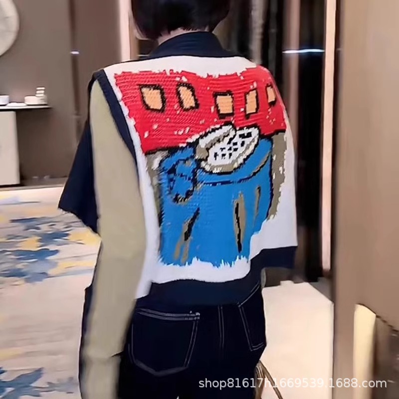 2025 春夏の新ハイエンドレディースファッション漫画カラーブロックニットベストスリムで多用途なツーウェアショールアウターレザー