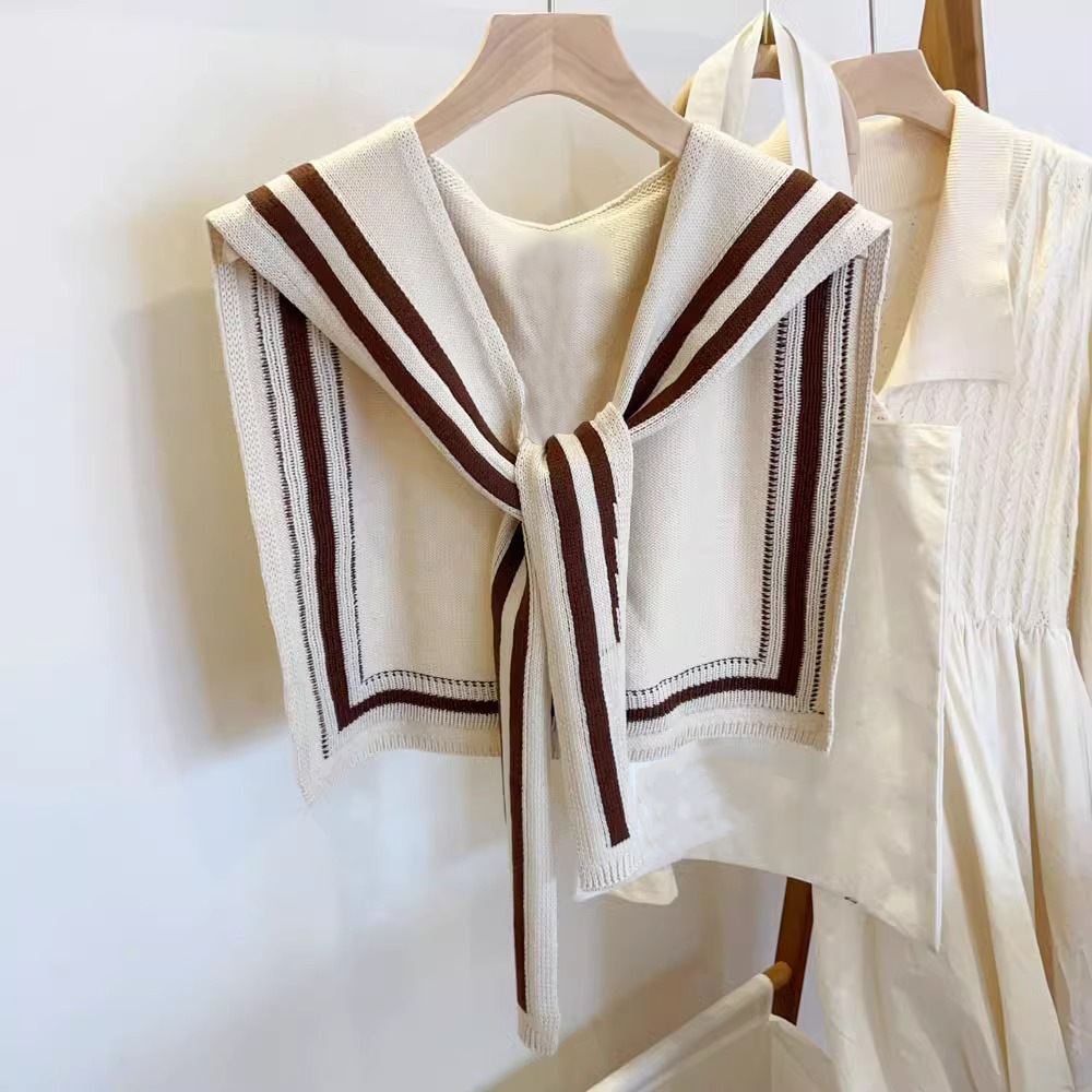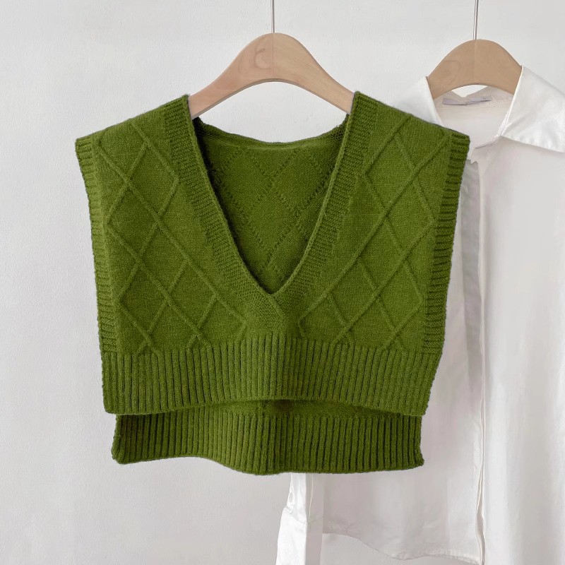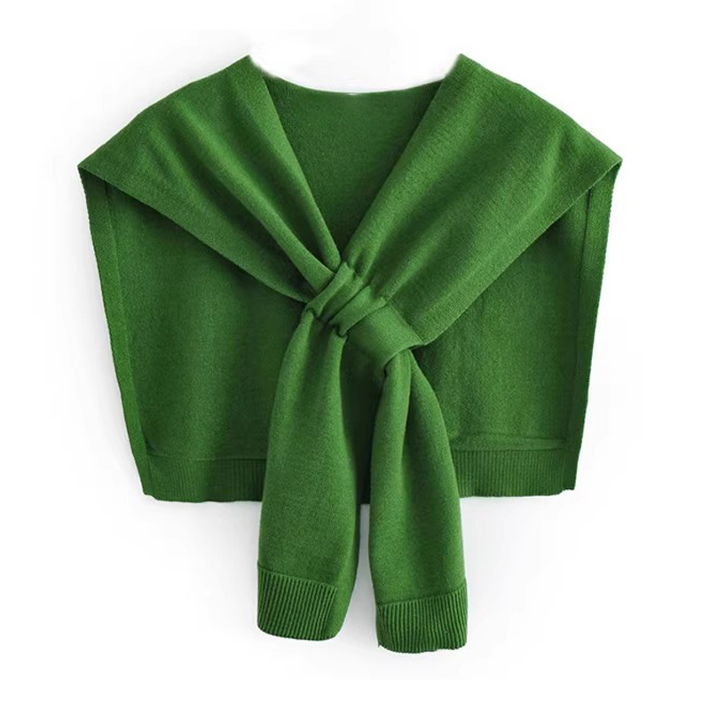 女性用ネイビーニットショール、春と秋の装飾チョッキ、暖かいネックプロテクター、偽襟、結び目付き肩