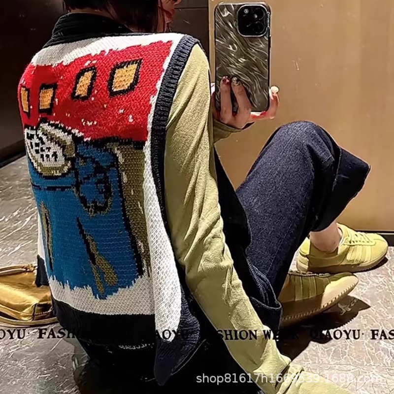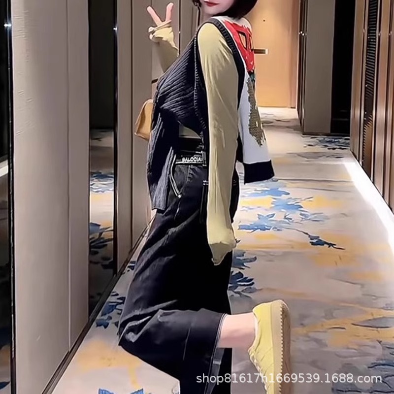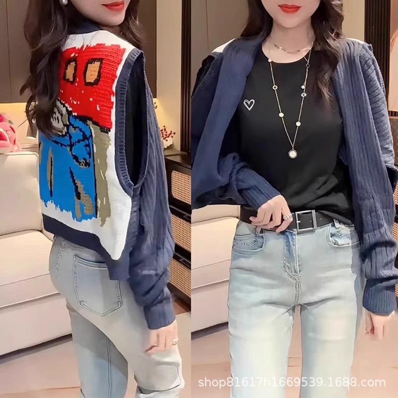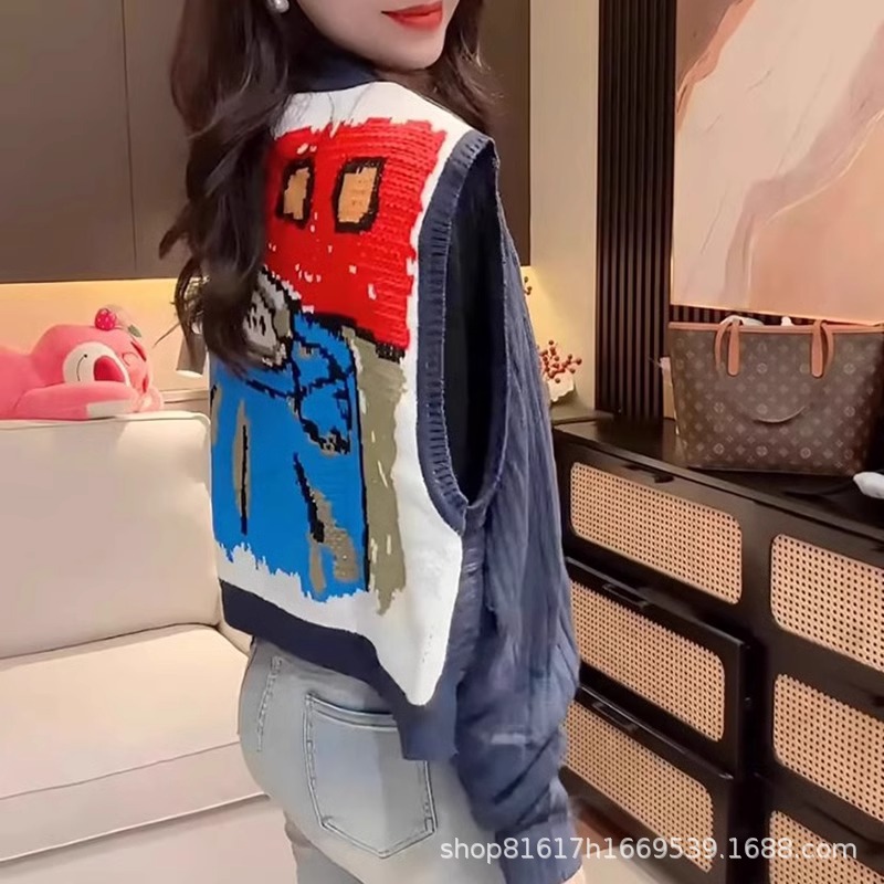 春服 2025 新デザインニッチ漫画ベスト女性のルーズノースリーブアウターショールインターネット有名人のレトロトップ