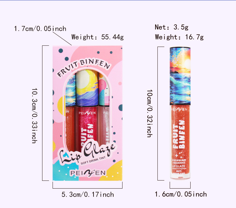 ペニフォンのカラフルな鏡面唇釉薬三本の国境を越えた対外貿易の潤い防水保湿は色をつけやすい