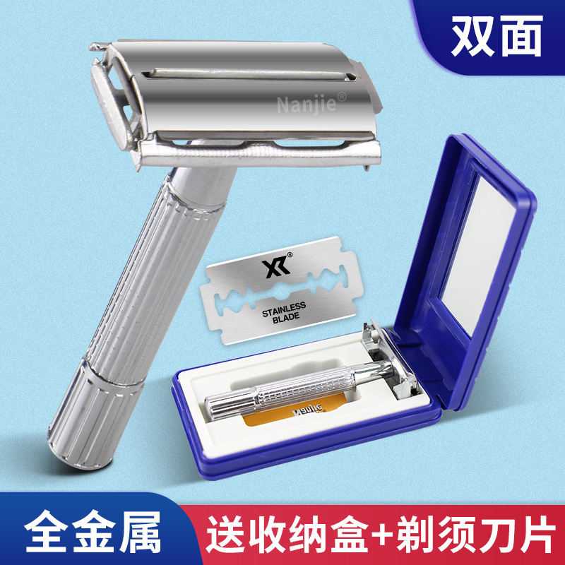 手動の旧式の髭剃りの男性の髭剃りの全金属の両面はステンレスの輸入の刃の形の剃刀を持っています。