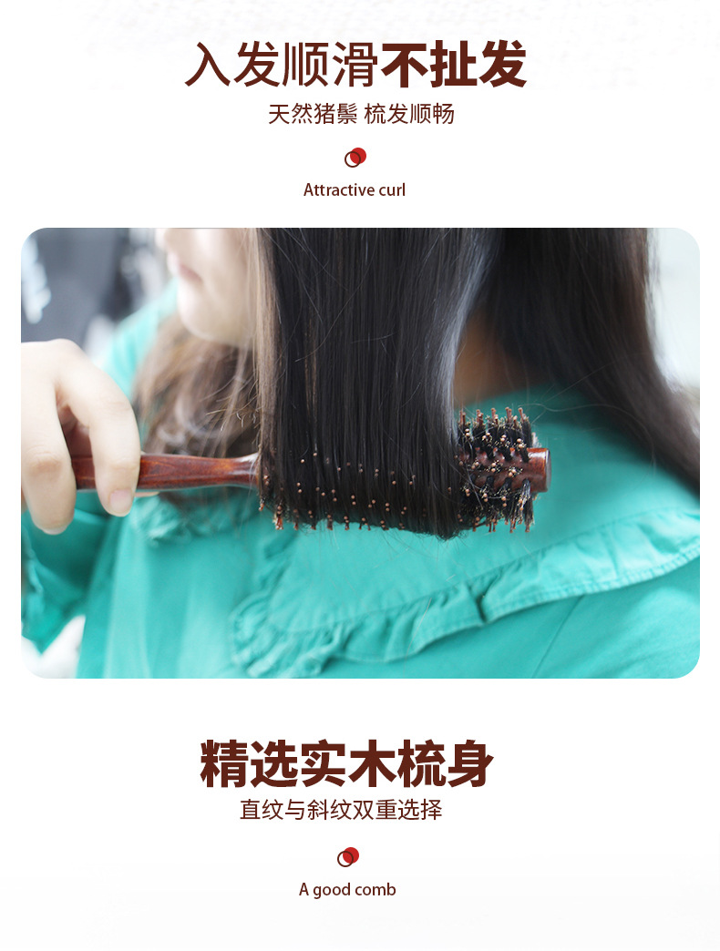 メーカースポット卸売りコストパフォーマンス清潔カール櫛豚毛荷木耐熱順直髪造形美髪櫛