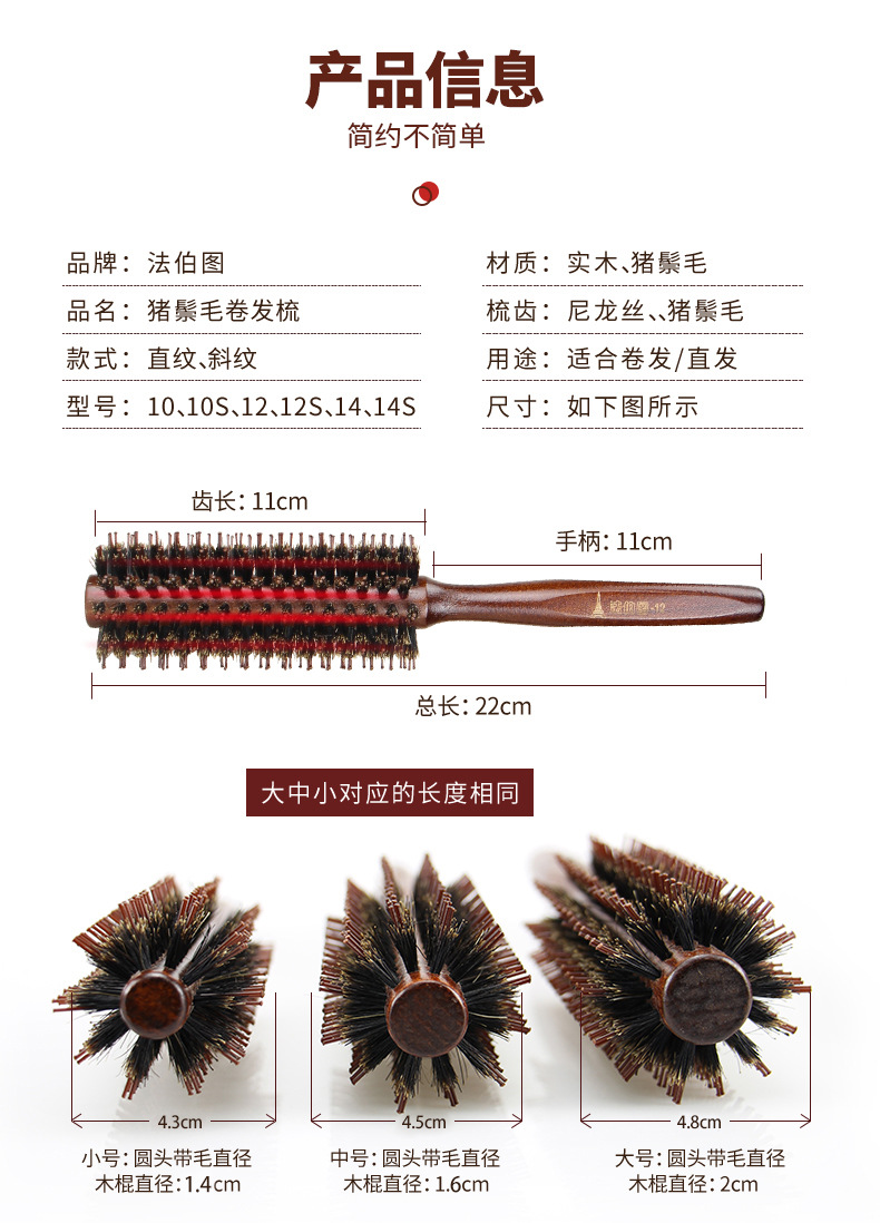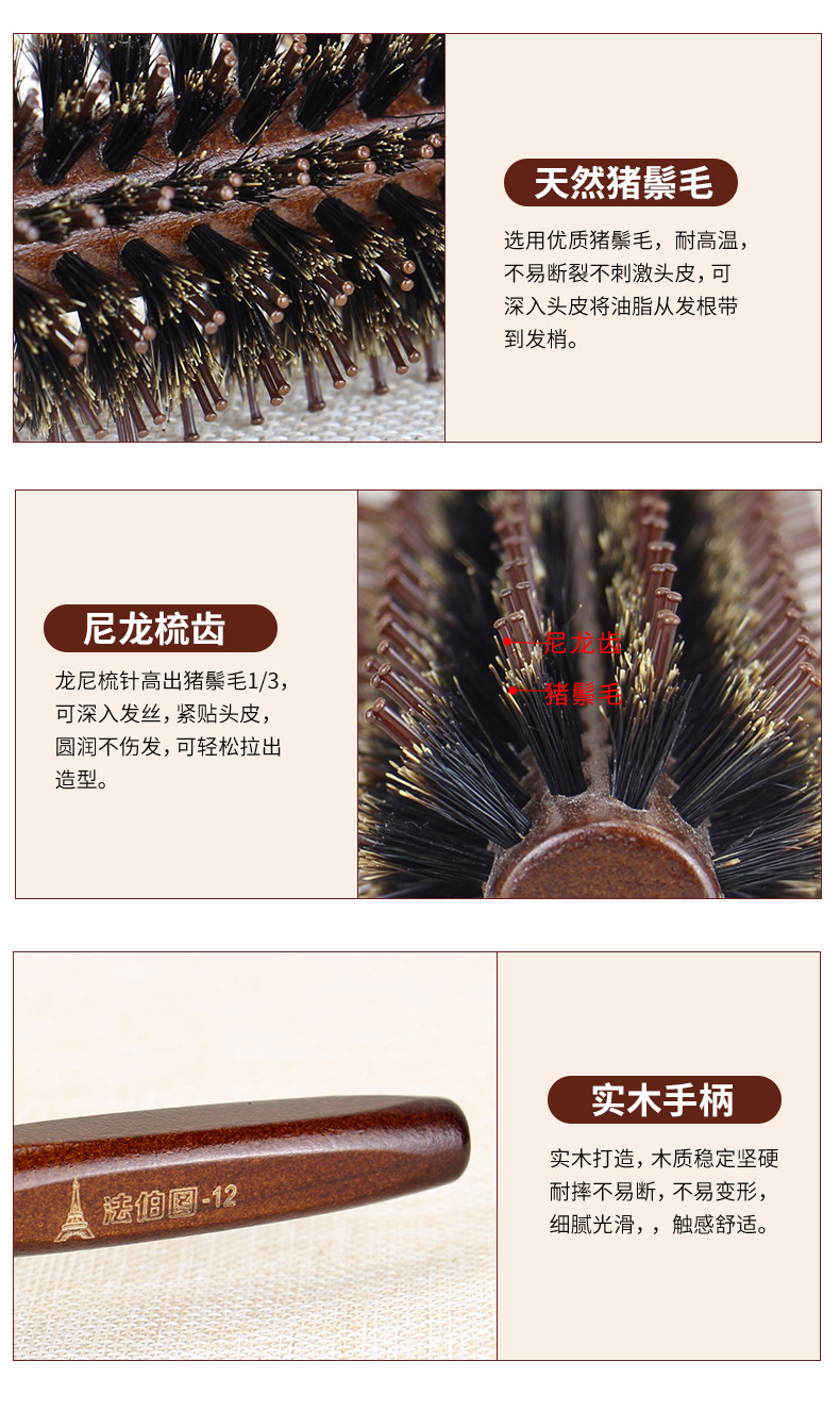 法伯図髪廊専用の豚のたてがみ巻き髪櫛毛巻き櫛美容櫛実木櫛荷木櫛加g