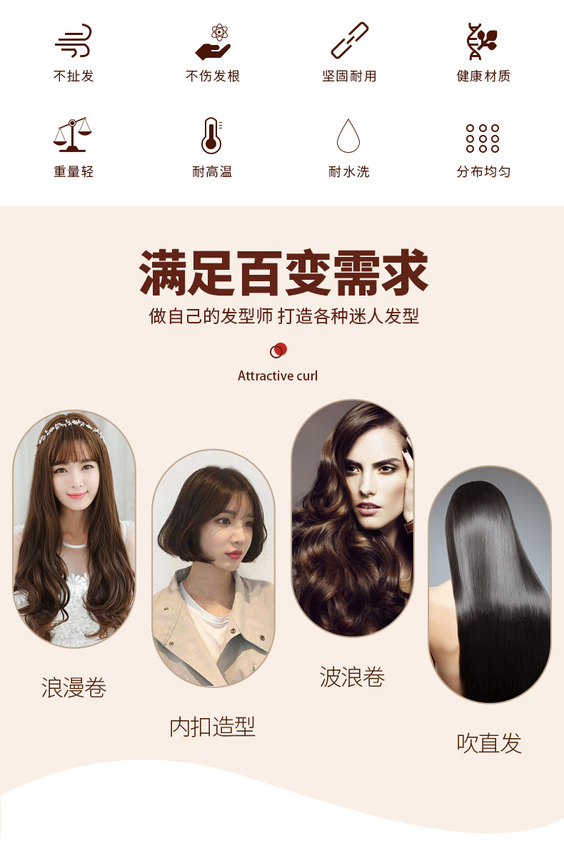 メーカーの現物荷木豚のたてがみは高温に耐えて髪を巻きます。